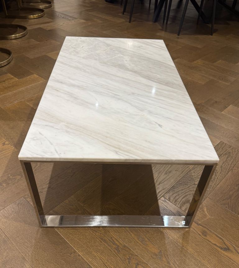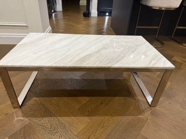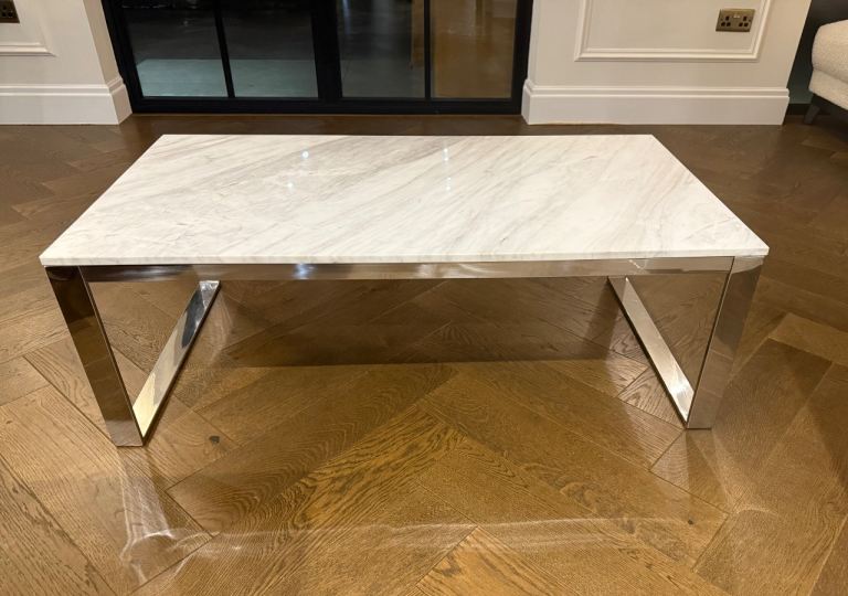John Lewis white/grey solid marble top coffee table with chrome legs.