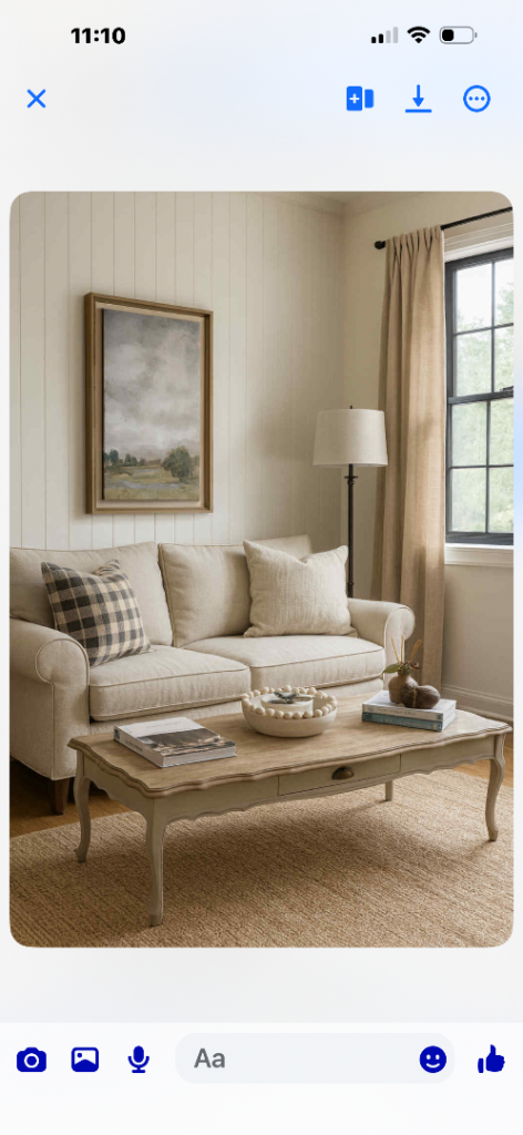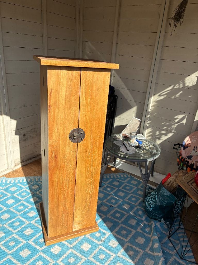 Beautiful mid oak finish in sand and French fennec paint size 143x52x39”