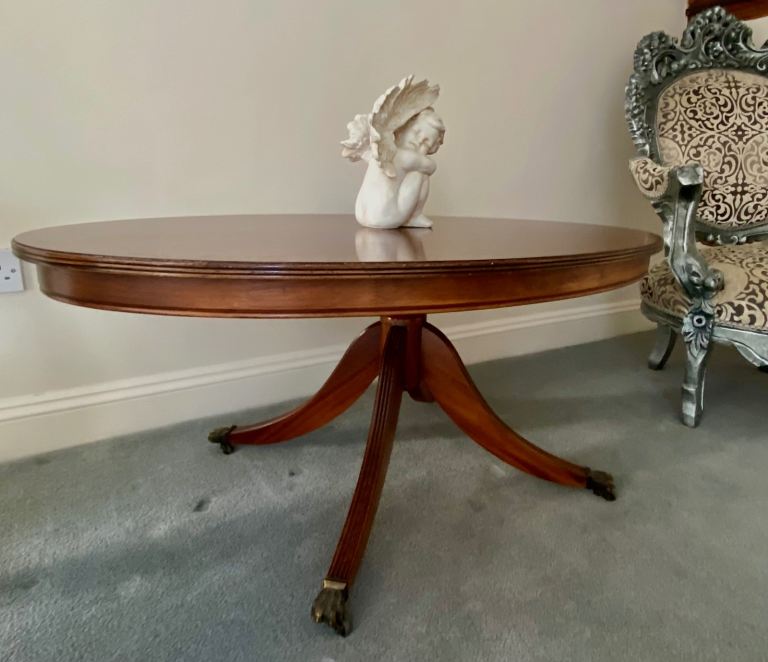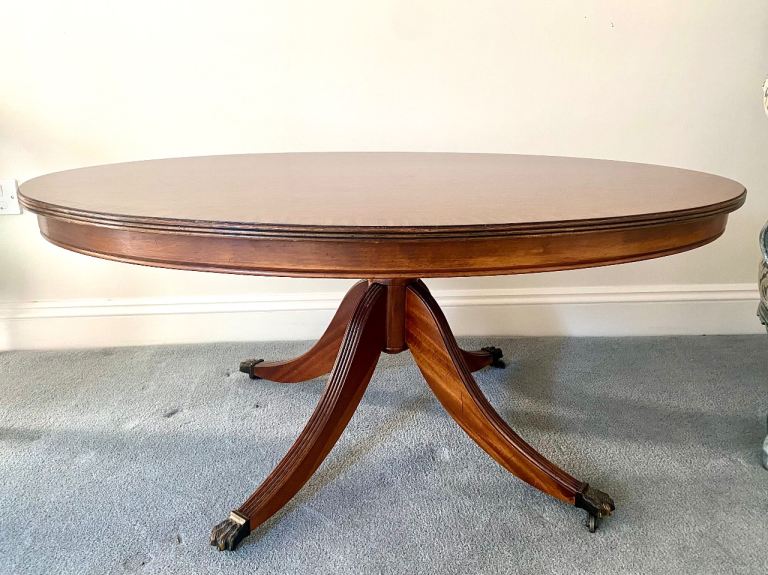 Mahogany large oval coffee table single pedestal
