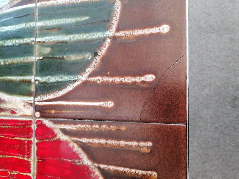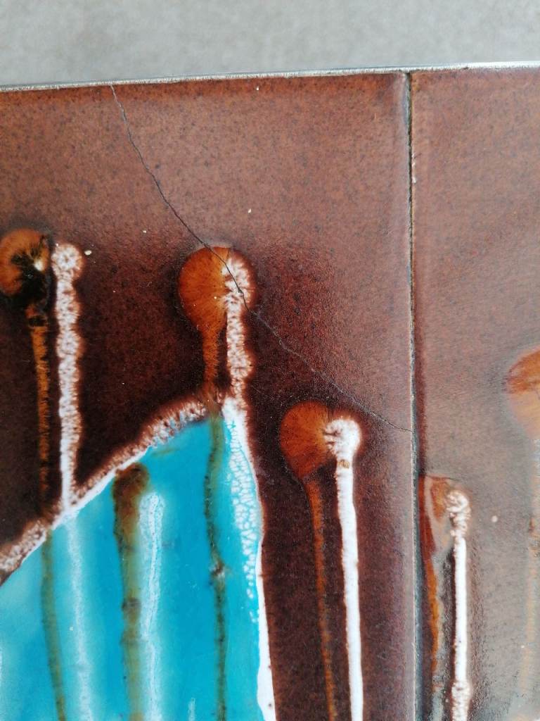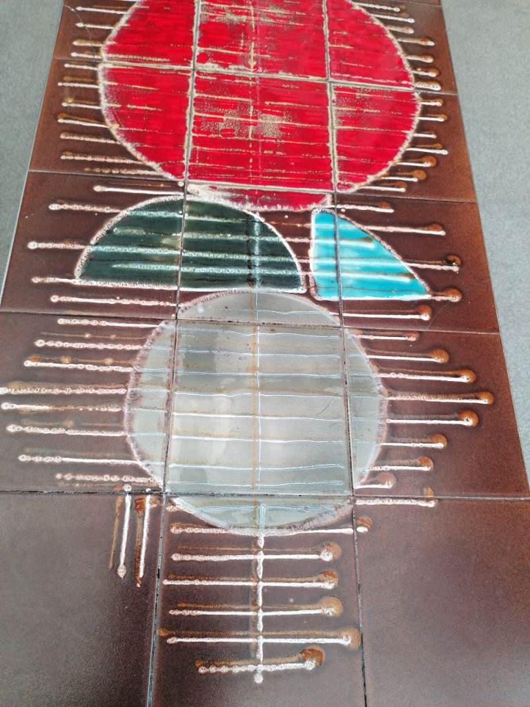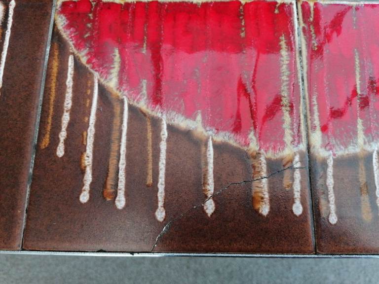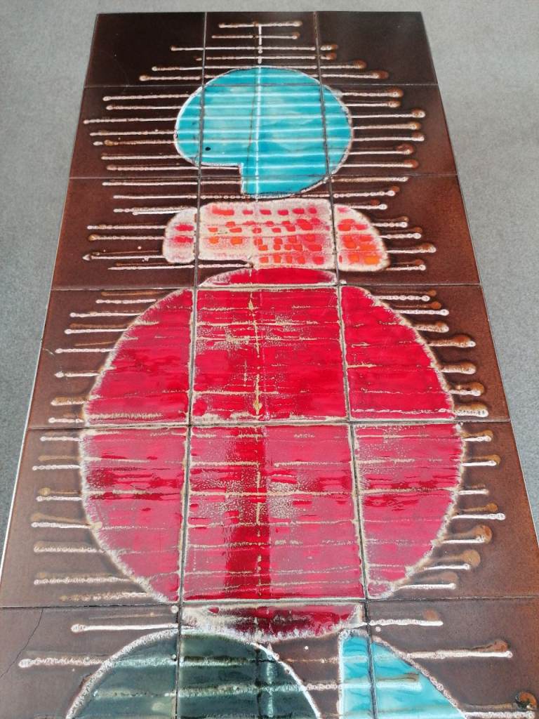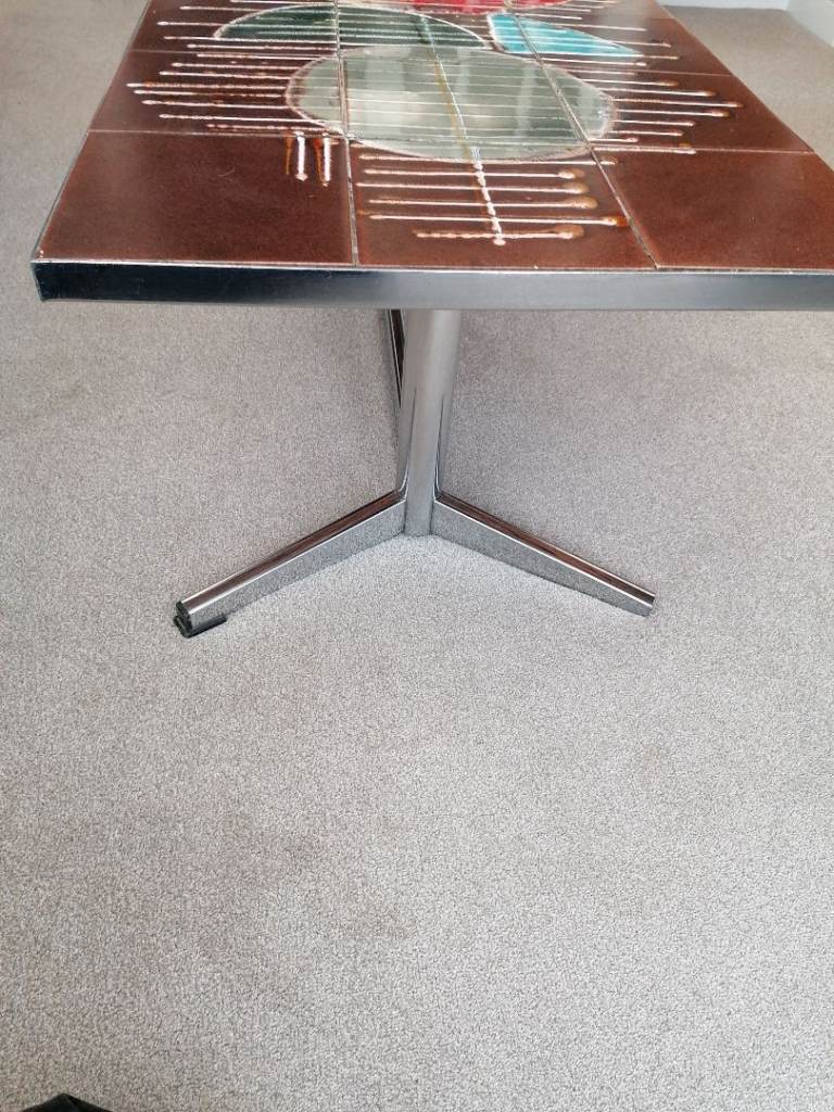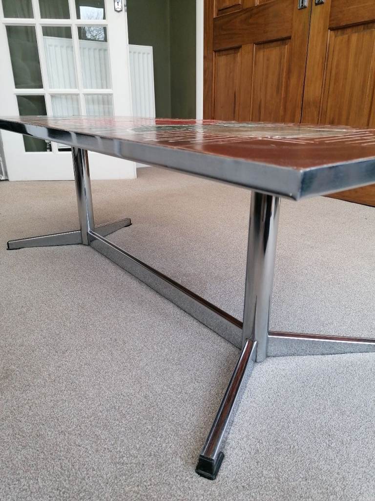 Mid Century, 1960's? Stunning unique design. Very solid, chrome/steel leg coffee table. Beautiful glazed ceramics. Will make an eye catching centre piece in any lounge. Few hairline cracks expected with age. Smoke and pet free home.