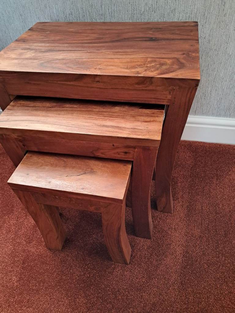 Lovely nest of 3 coffee tables, perfect condition, solid sheesham wood.