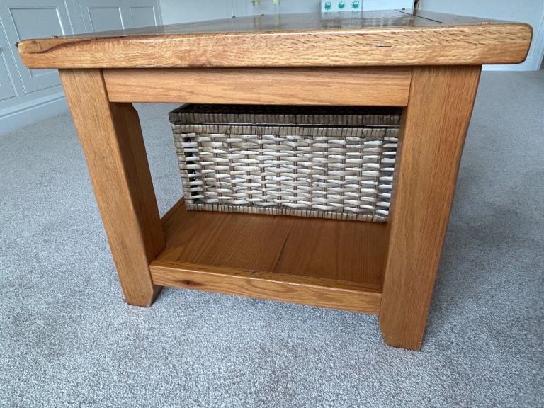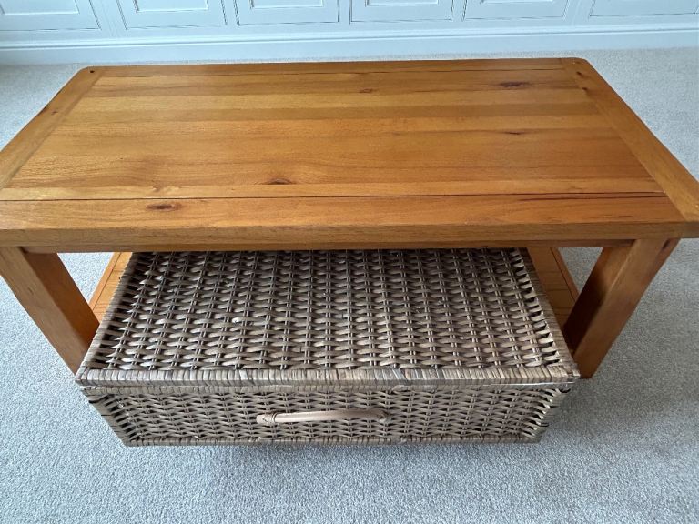 Oak coffee table and storage basket