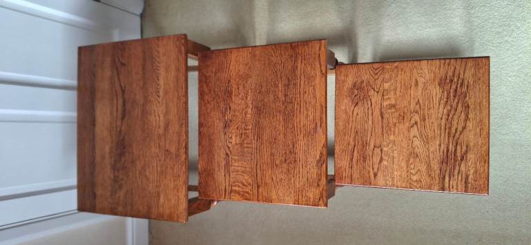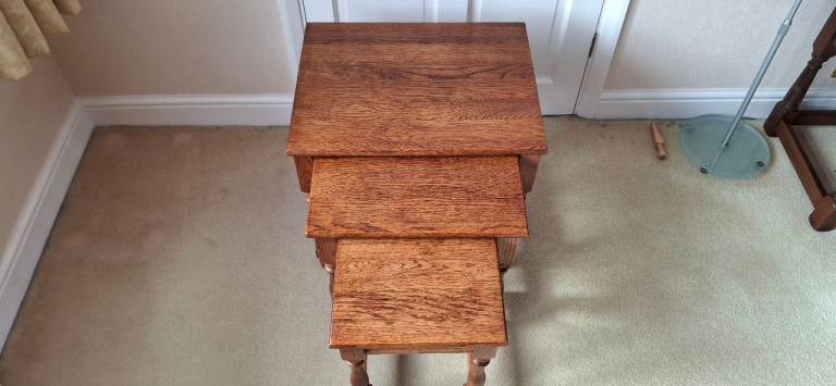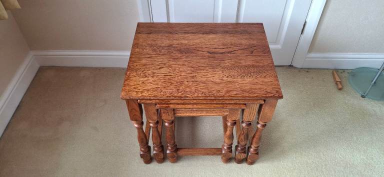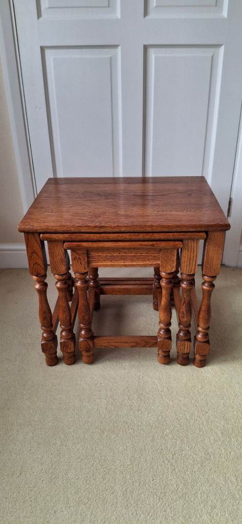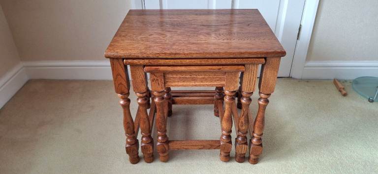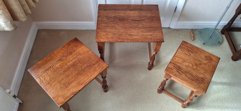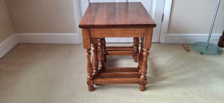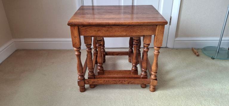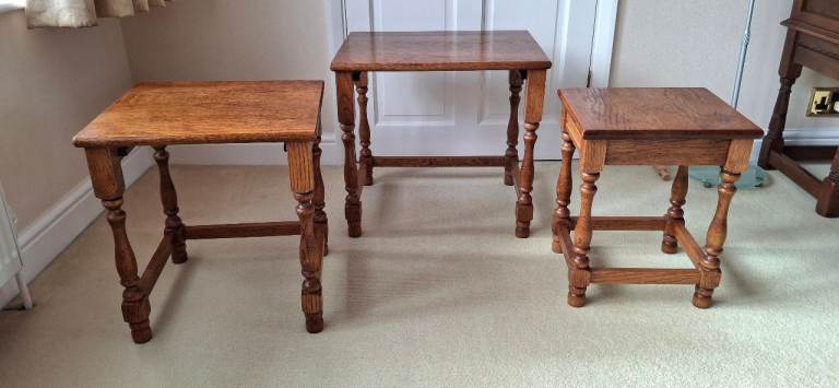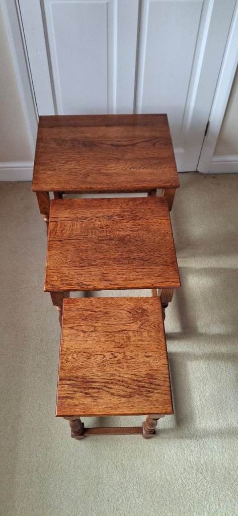 Old Charm Jaycee style solid oak nest of tables in very good condition.