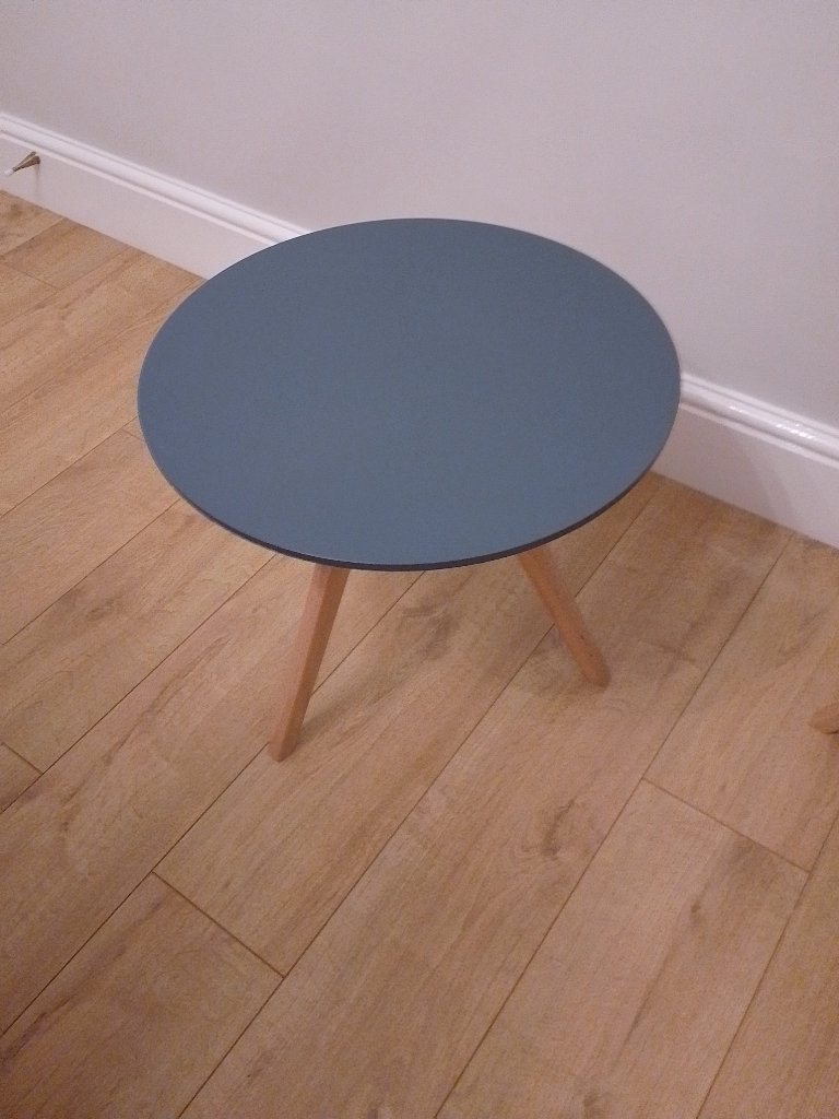 Orion table from Made (teal colour). Great condition. Two small marks - see photos. Collect from Baldock. Diameter 50cm