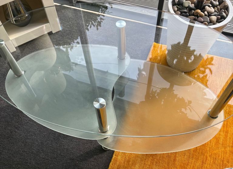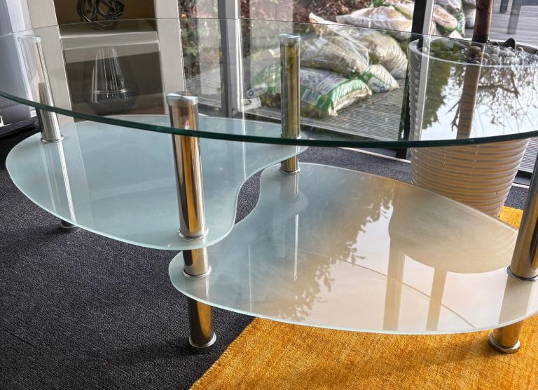 Large Glass/chrome coffee table - Unusual design with split level opaque glass below top glass.
