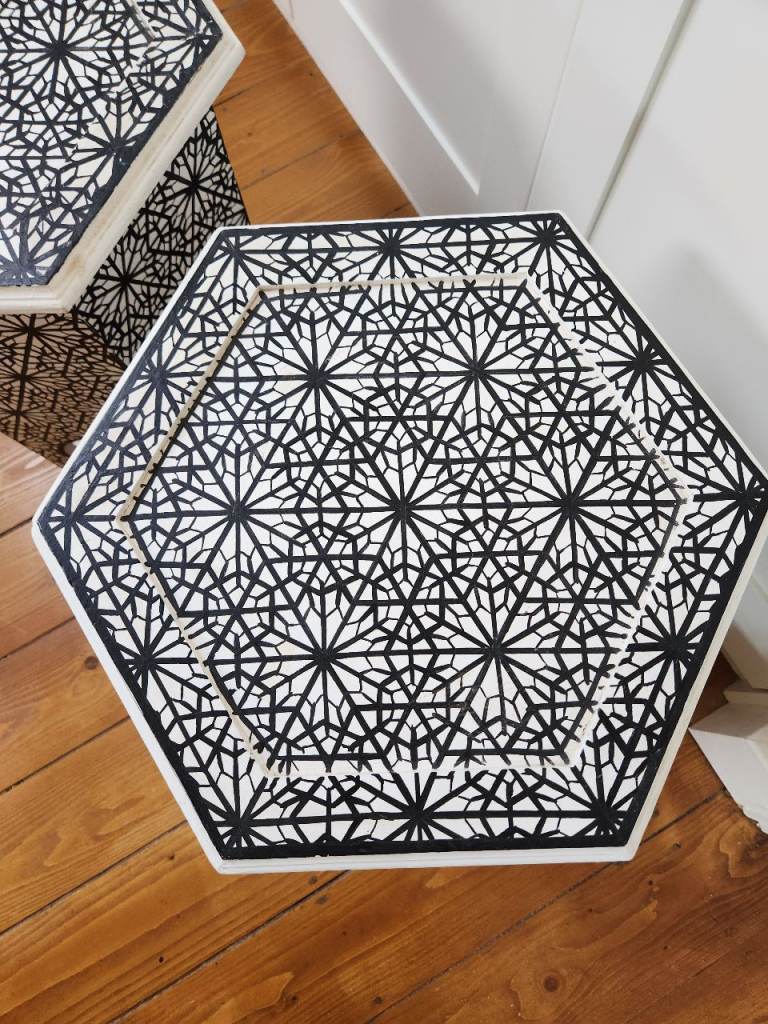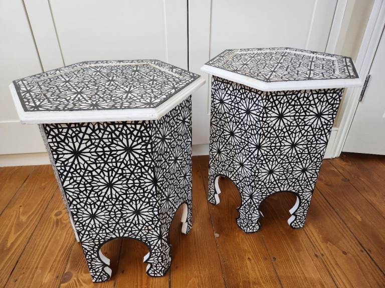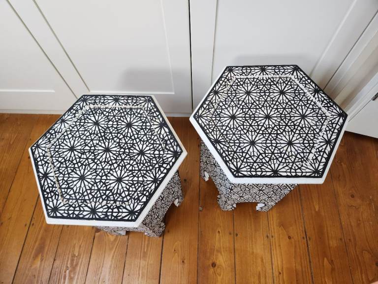 Selling this pair of beautiful tables, handmade and hand painted, bought from Etsy for £240. We have redecorated and they dont go any more. We have used them as side tables and coffee tables.