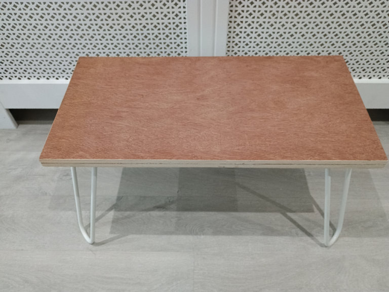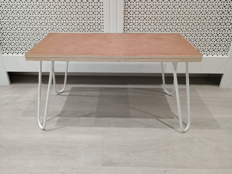 Plywood Coffee/ Side Table With White Hairpin Legs Vintage Industrial Style
