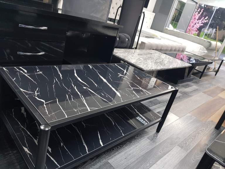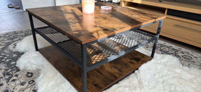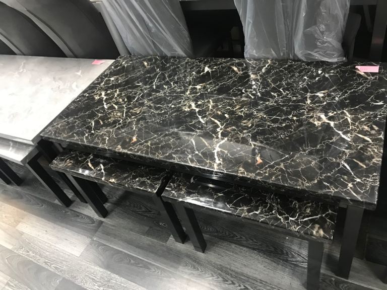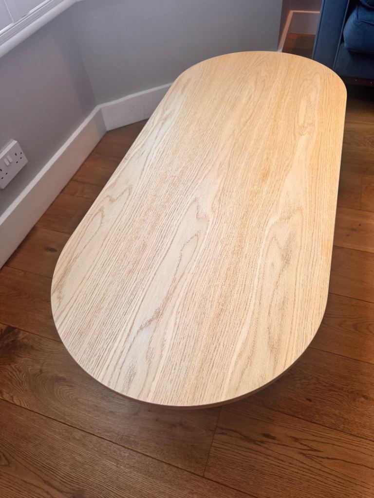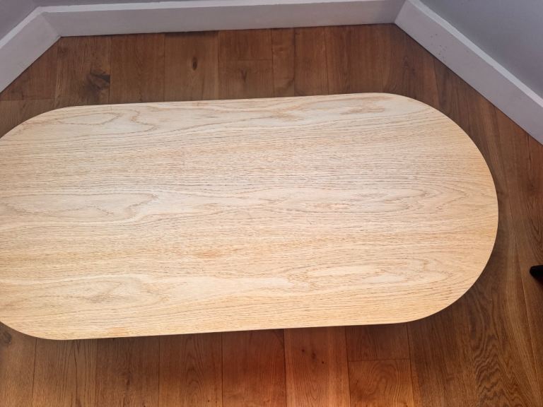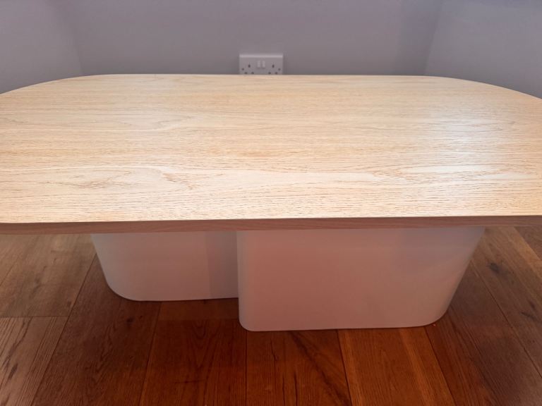 Dimensions - 115cm length, width 50cm, height 37cm. Wood top and ceramic style metal base