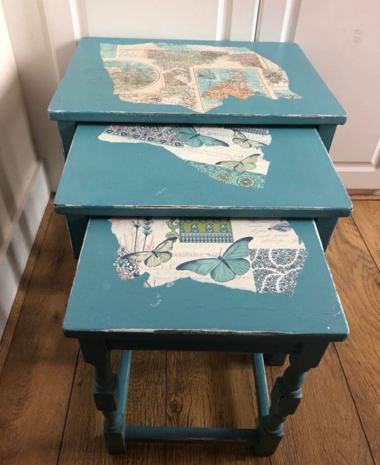 Beautiful solid wooden nest of tables Shabby Chic, hand painted with chalk paint.