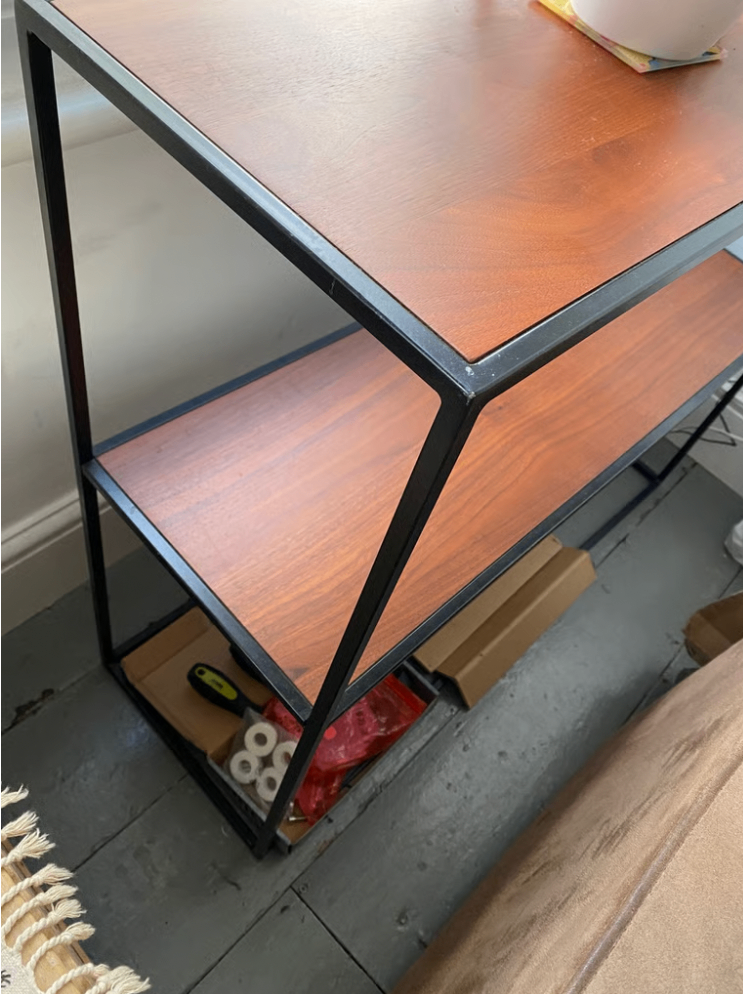 Posting for 10+ yearsshelf, High side table, double console table, stylish metal and walnut wood, good condition