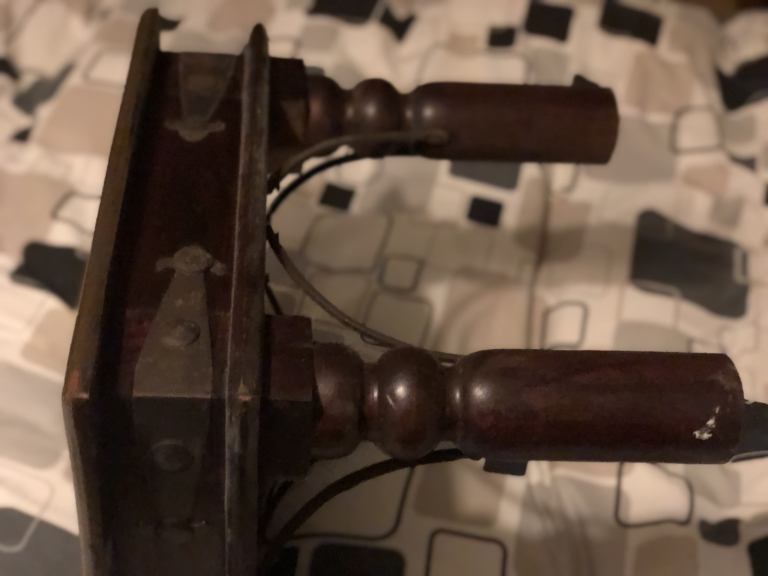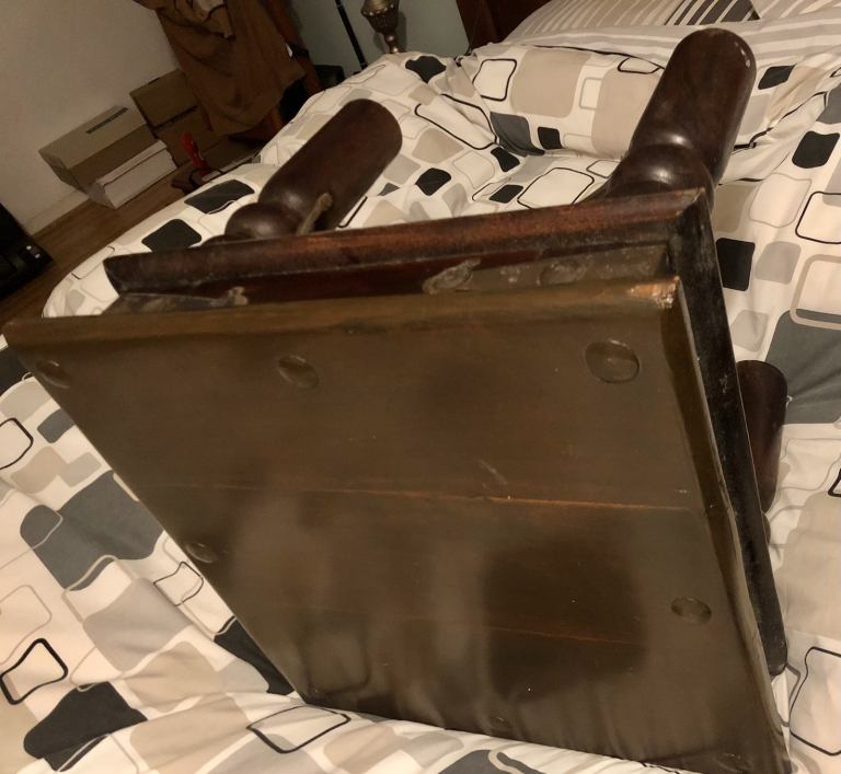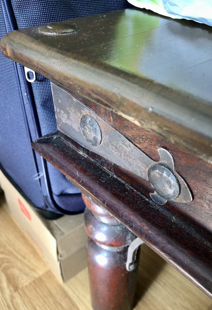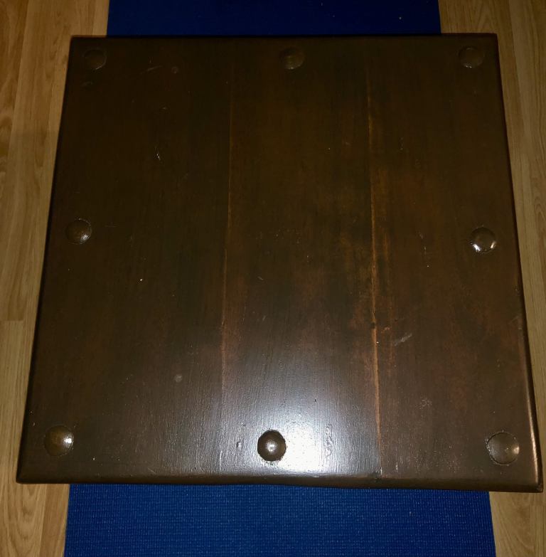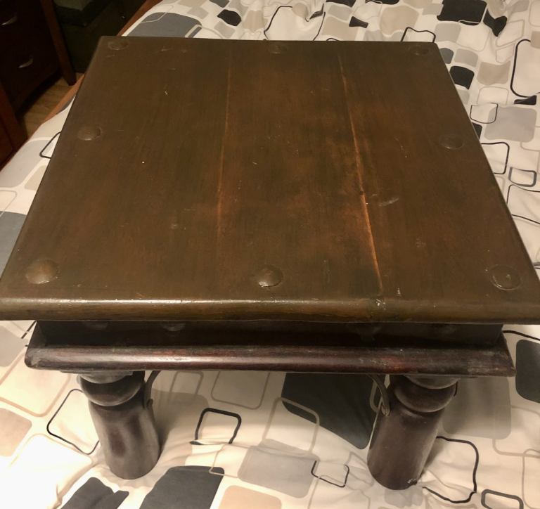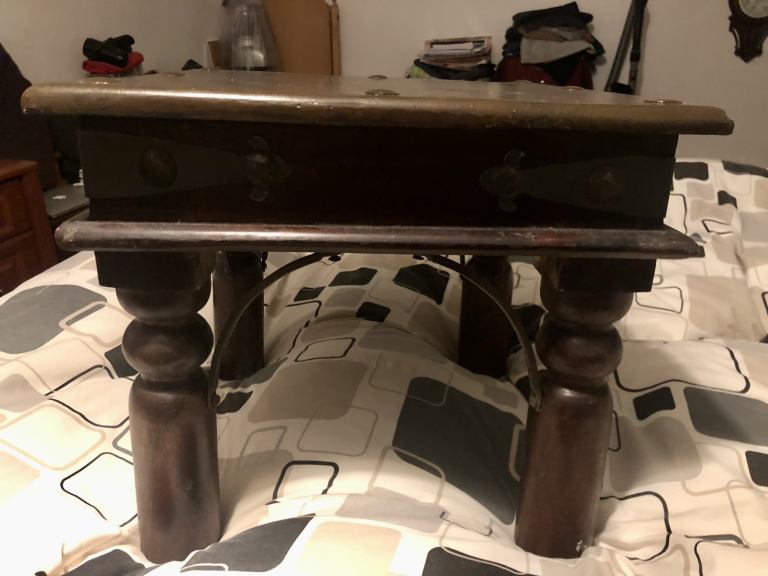 As you are looking on pictures solid heavy wood and iron made vintage quality side table available.