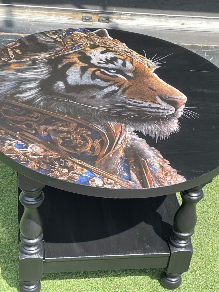 Side table ( vintage solid wood and iron )