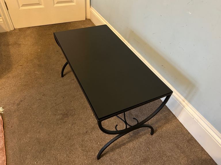 Slate Top With Black Metal Framed Coffee Table H16in/41cm W29in/74cm D15in/38cm Good condition D327