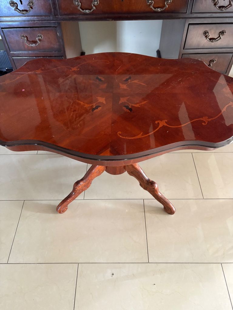 Small coffee table with pretty pattern on with small drawer and pretty handle