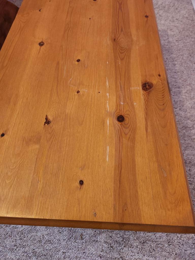 Top scratched, could be fixed by channelling your inner repair shop using wax furniture crayons.