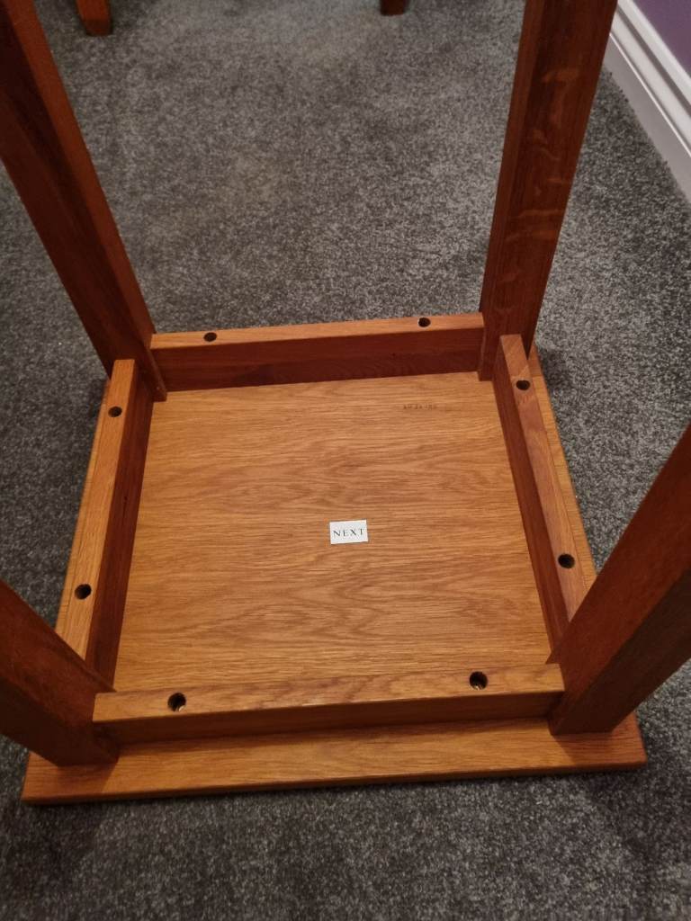 Solid Oak Nest of 2 tables. Solid and study. From Next. Excellent condition. Dimensions of larger table approx 50cm tall, 55cm wide, 45 cm deep. From smoke free home. Collection Blackridge