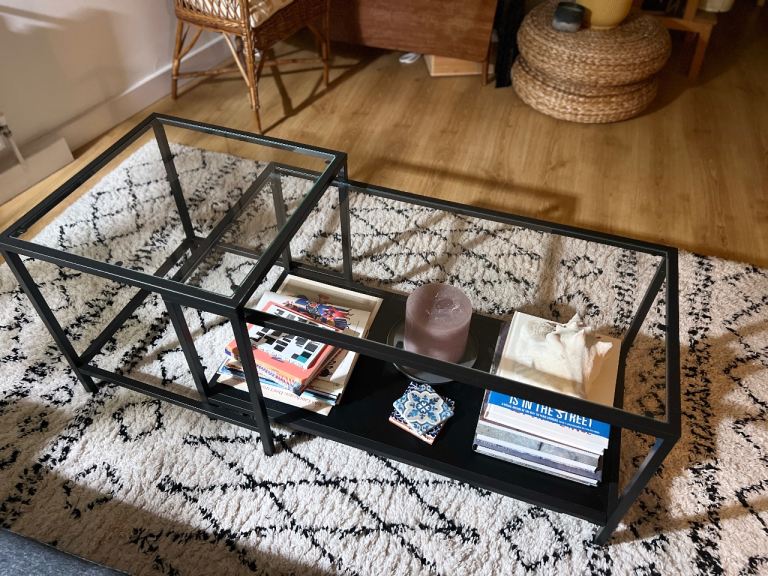 This beautiful coffee table measures 90 x 90 x 50 cm high.