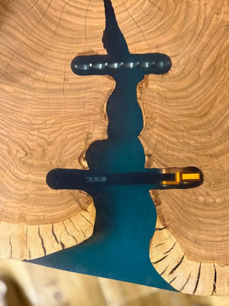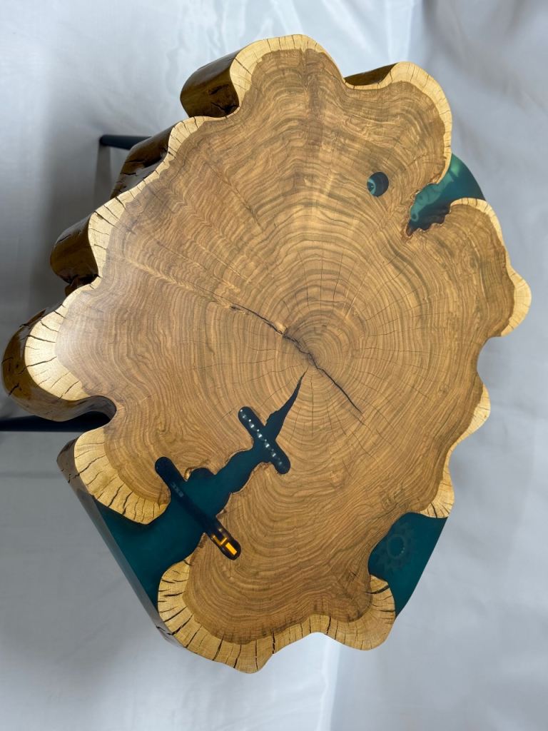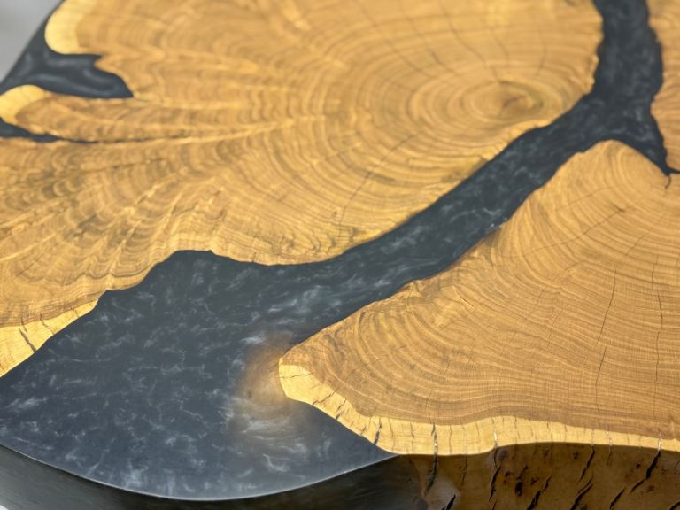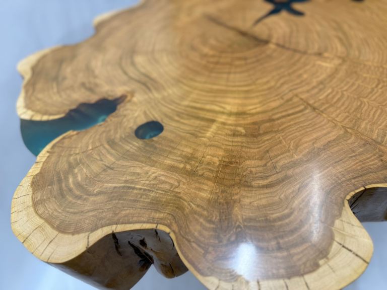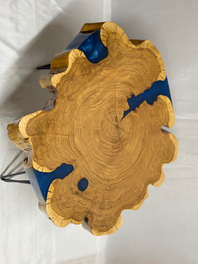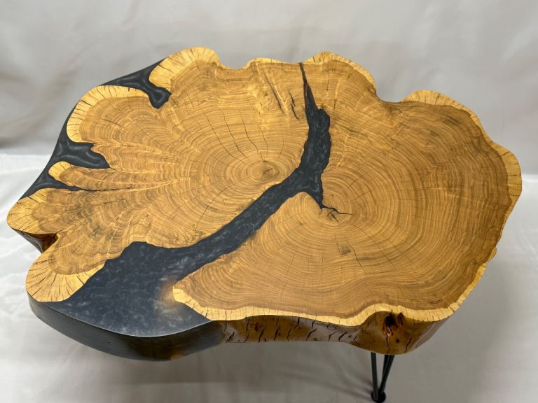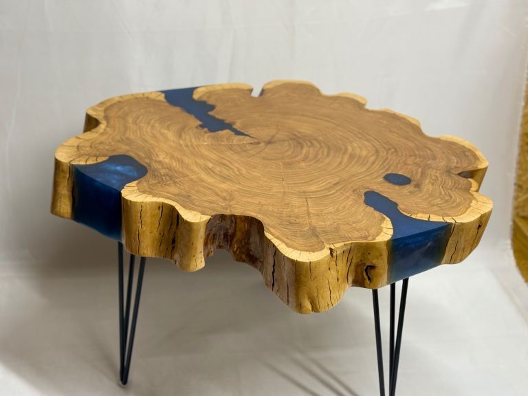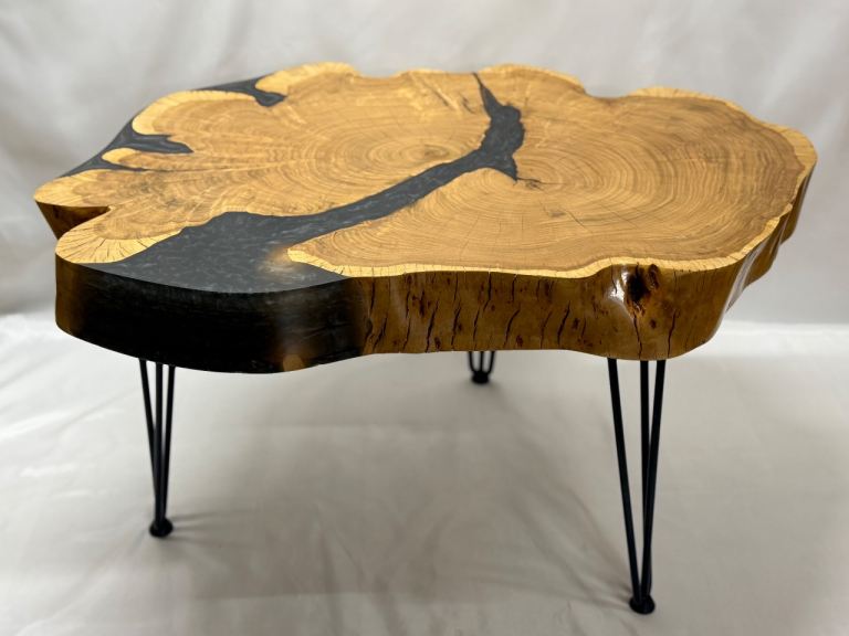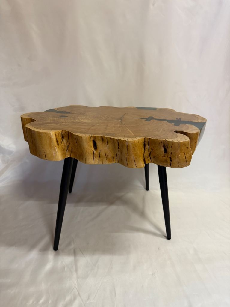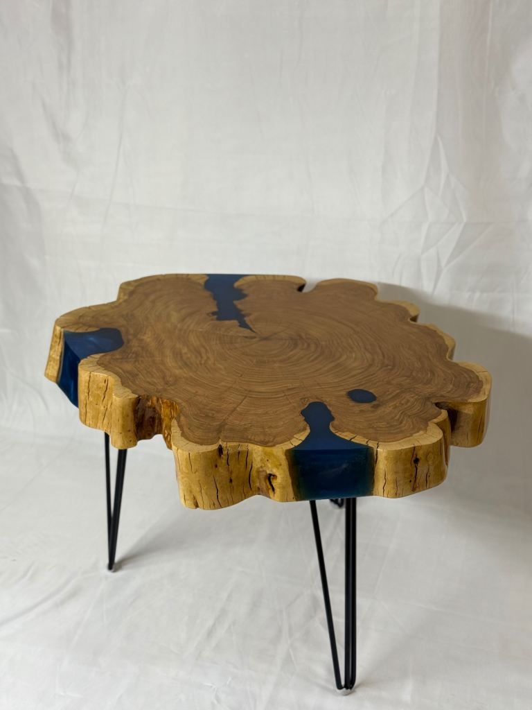 Solid wood wild cherry table with epoxy .