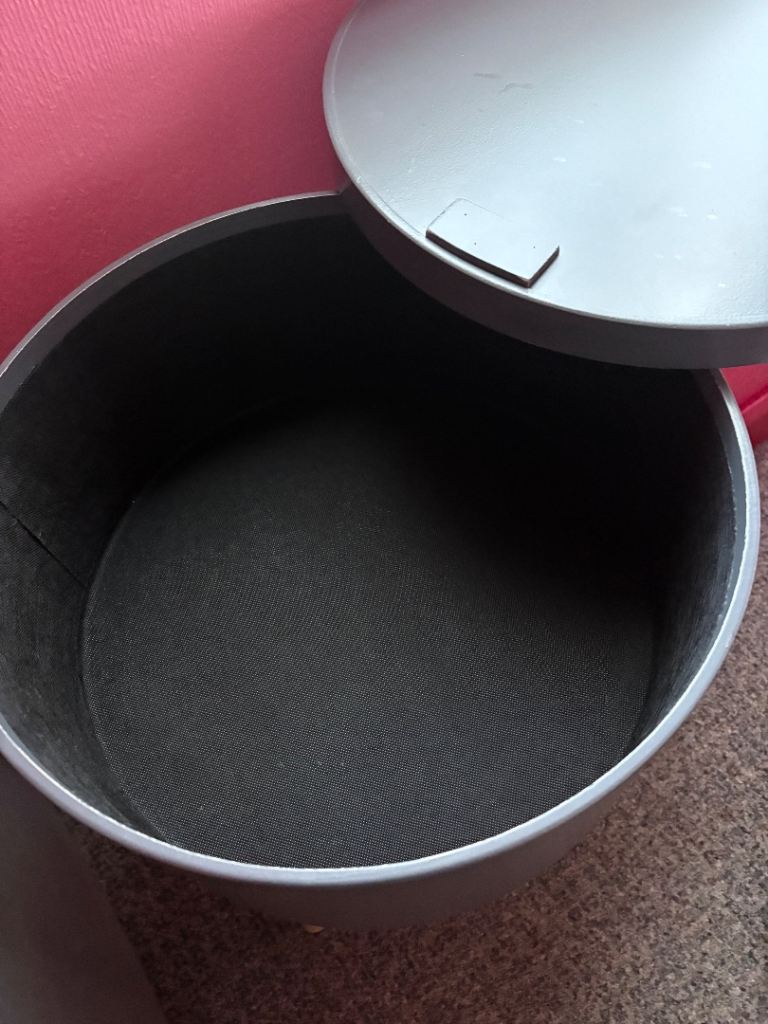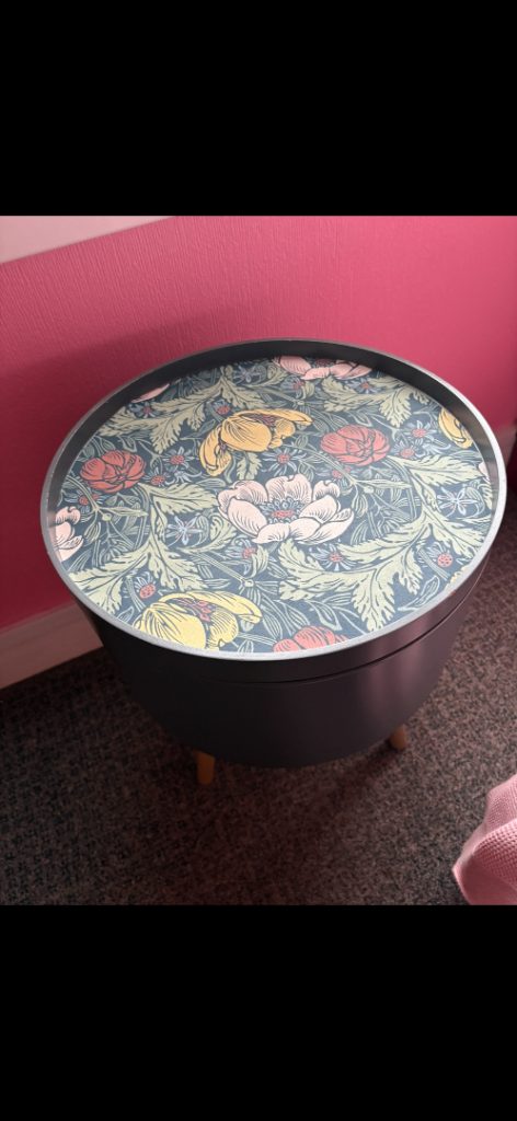 Small dark grey storage table decoupaged with a floral paper size in inches diameter 15 x height 21. Cash and pick up AB24