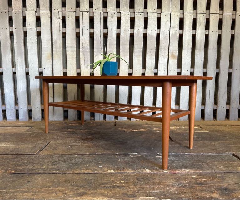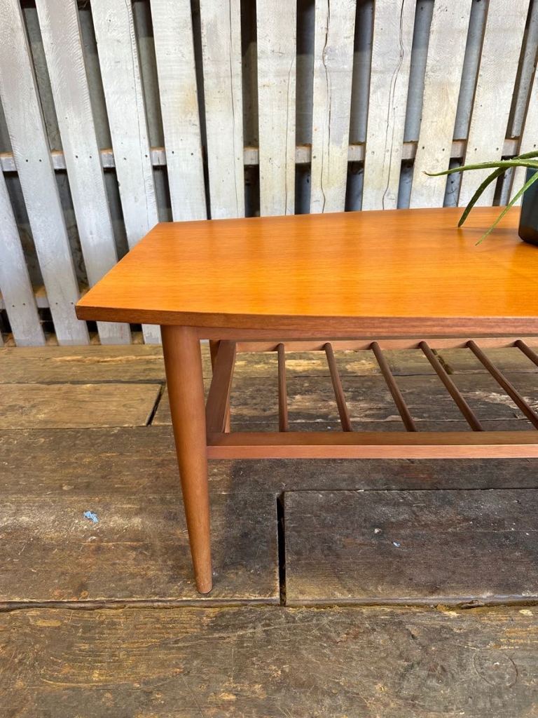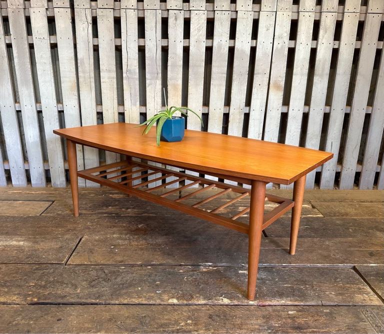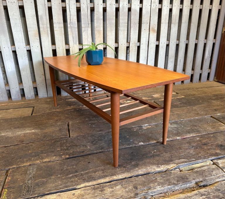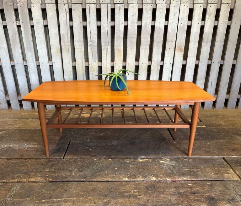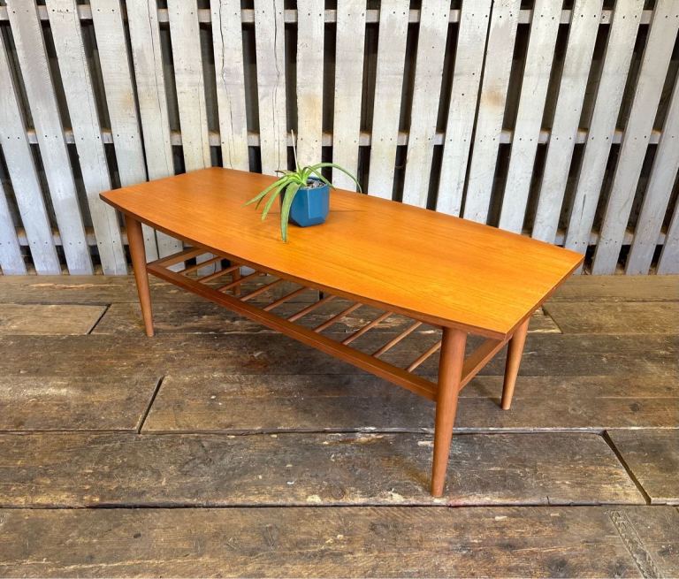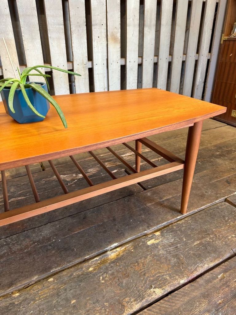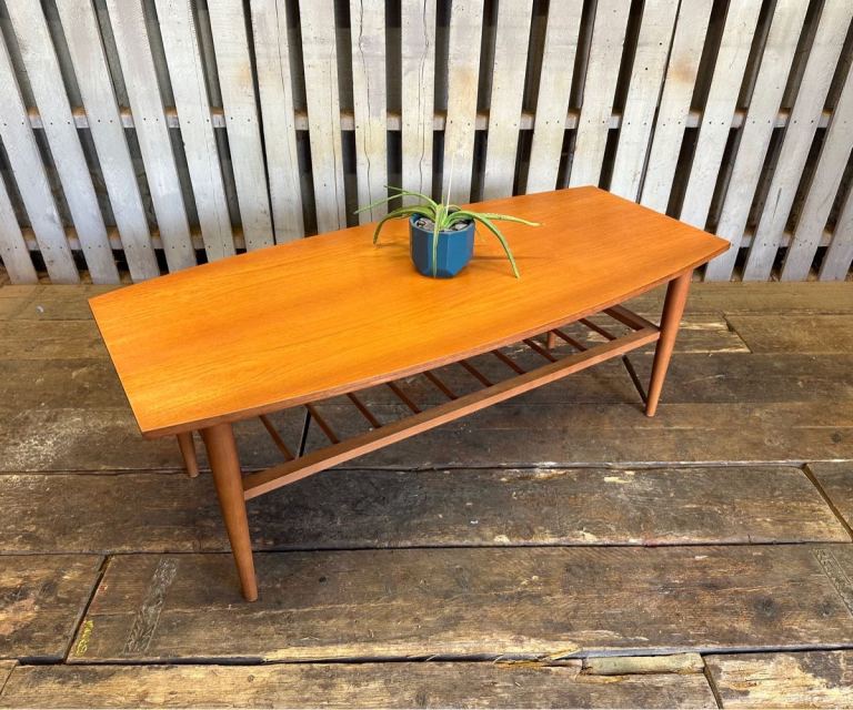 Really nice 1960s surf board coffee table in teak . Lovely good sized table with magazine shelf underneath
