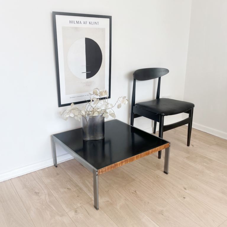 Vintage 70s coffee table in stainless steel and black Formica