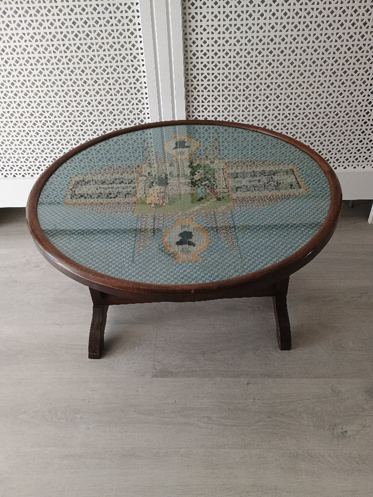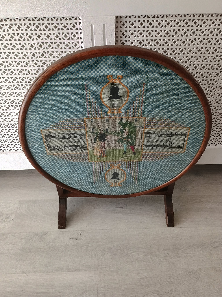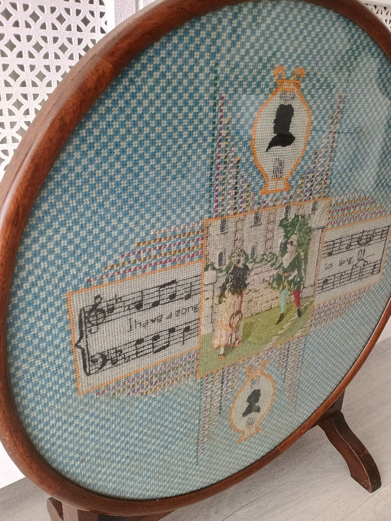 Vintage Antique Round Folding Fire Screen / Table with Tapestry Embroidery