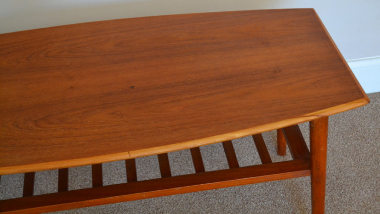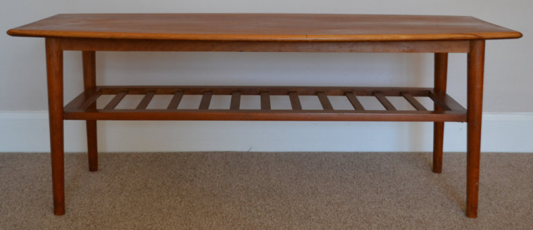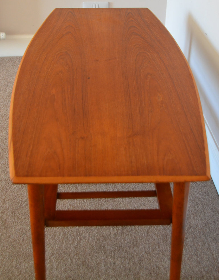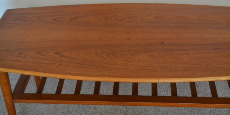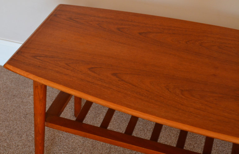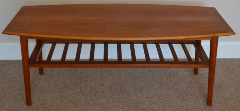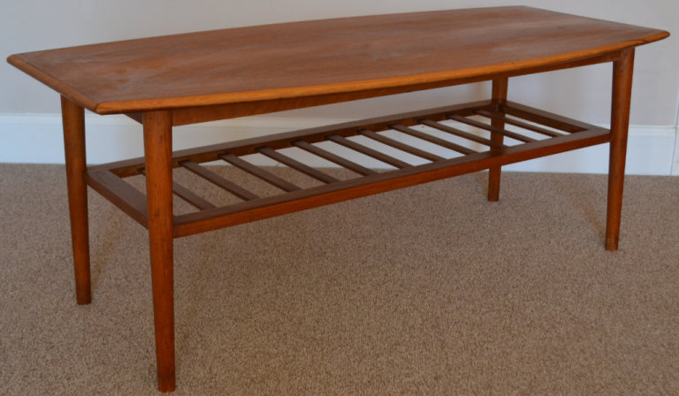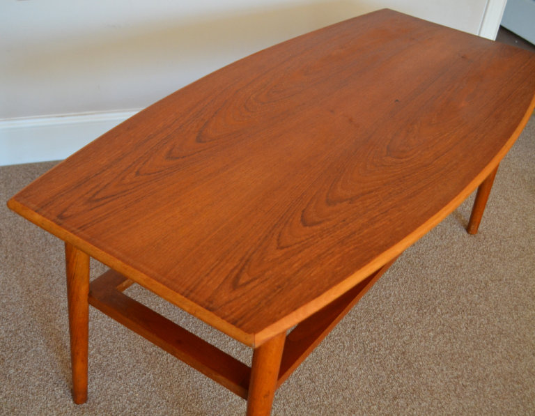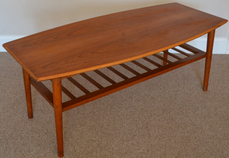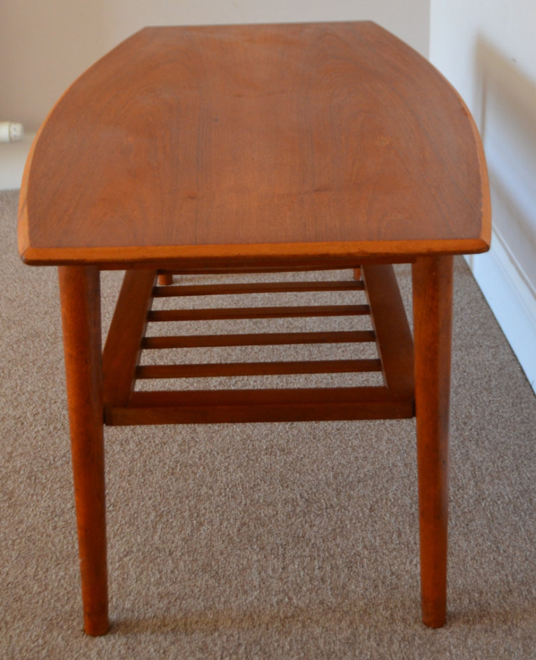Vintage Mid Century Curved Edge Teak Coffee Table With Magazine Rack 1960s Retro Danish Style
