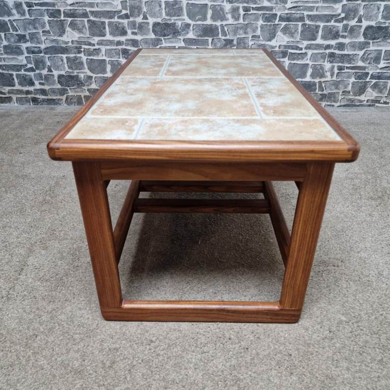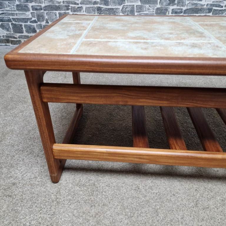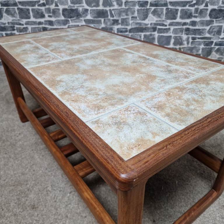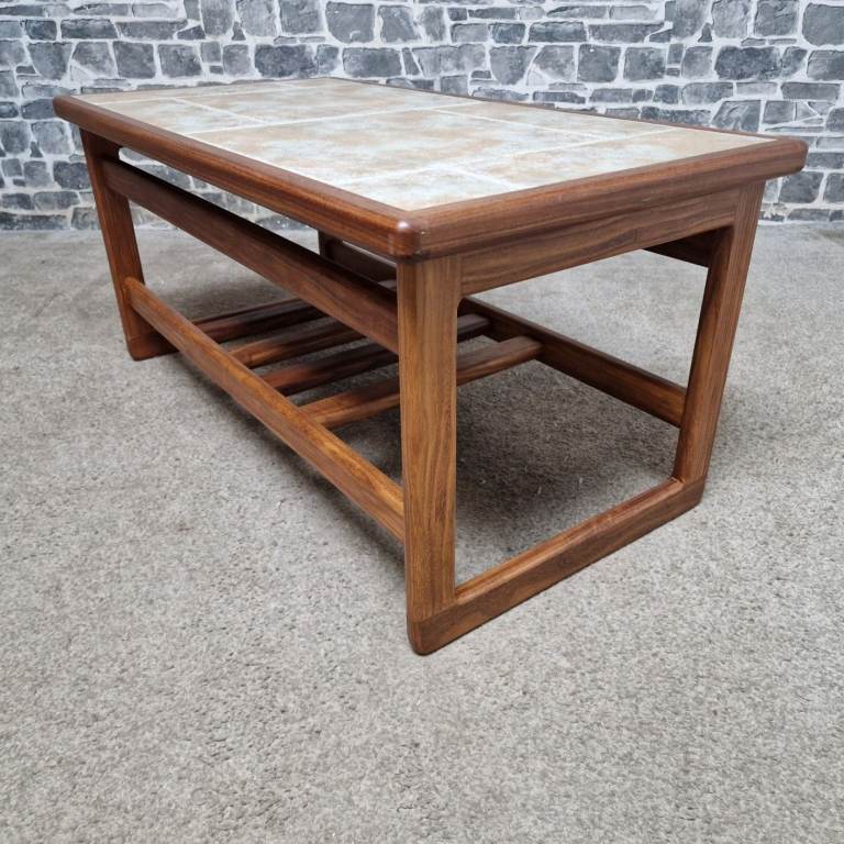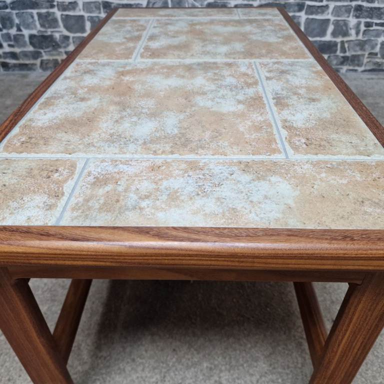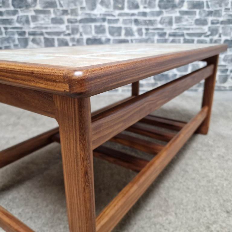 Vintage Mid-Century Teak Coffee Table with Ceramic Tile Top