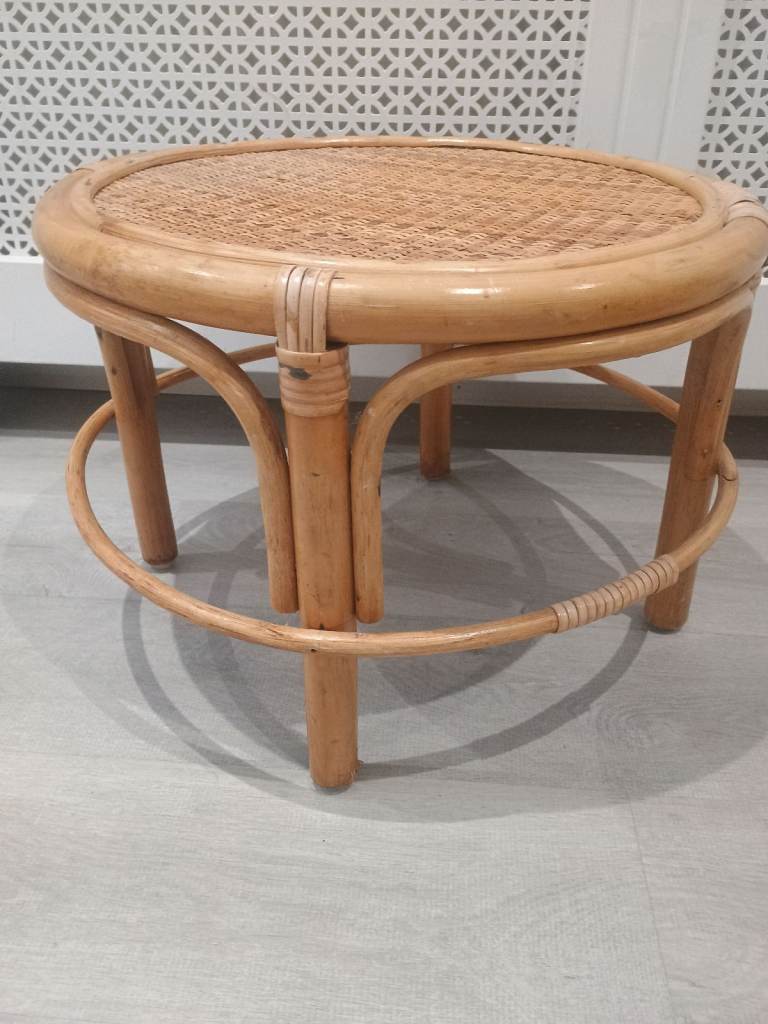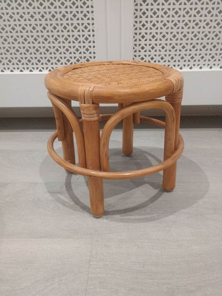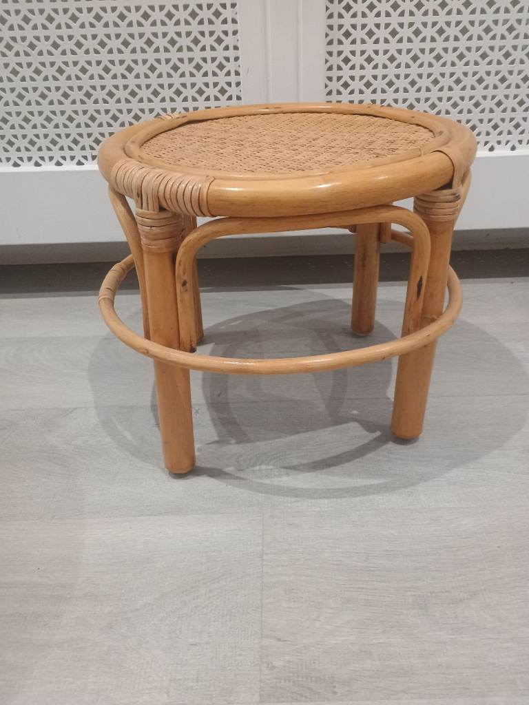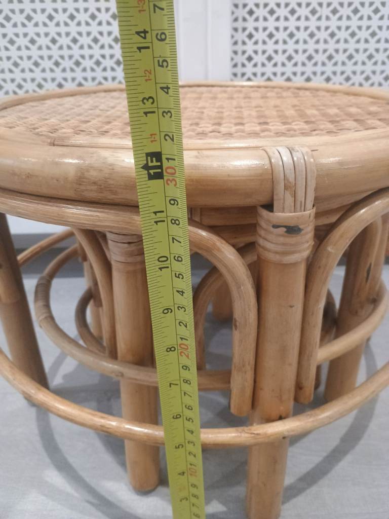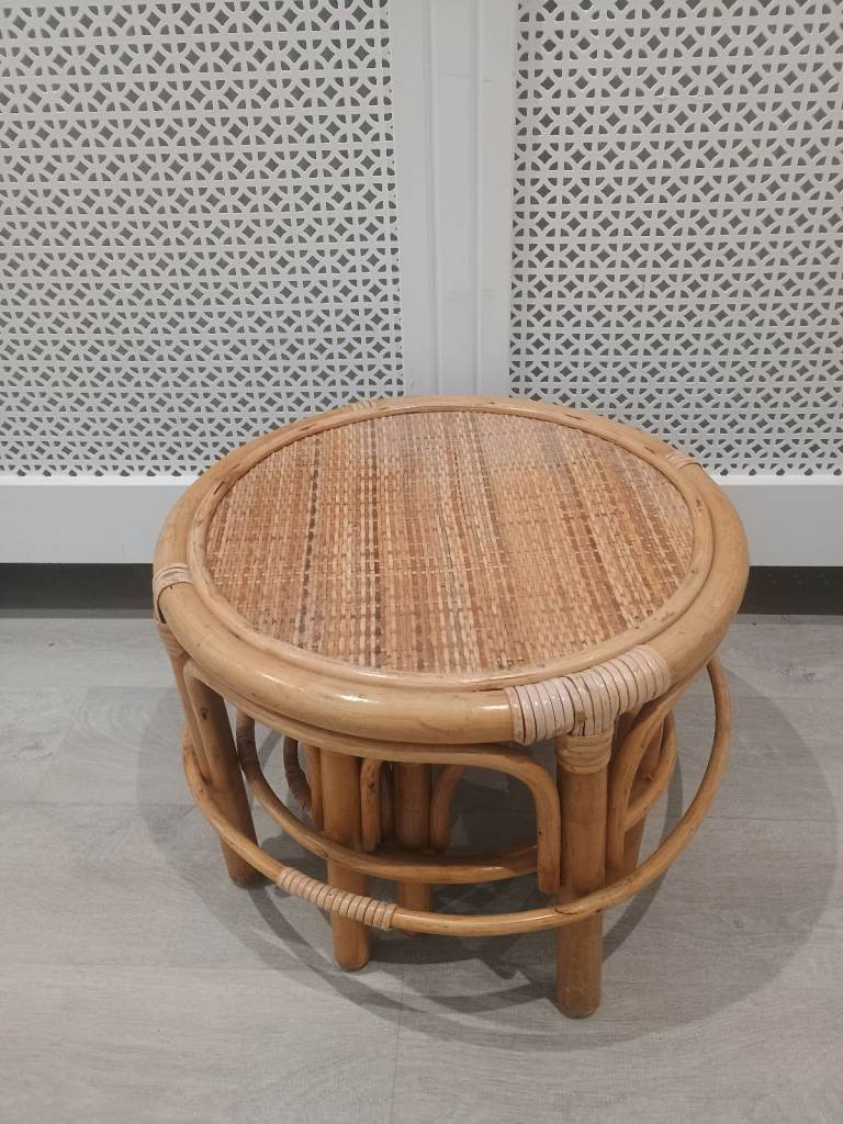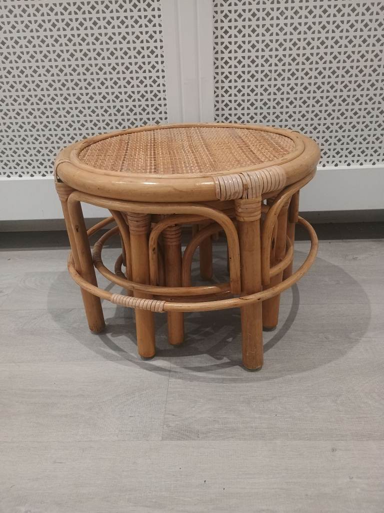 Vintage Nest of 3 Bamboo Side Tables Plant Stands Round Rattan Cane Mid Century Tiki Boho Style