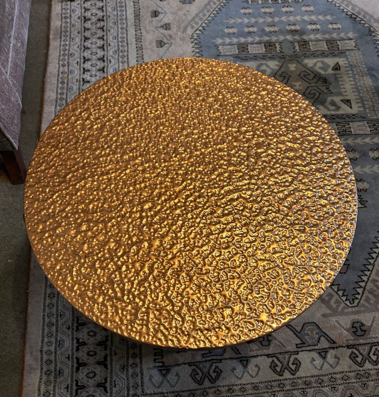 Vintage Oak with Hand-beaten Cooper Top Round Wooden Coffee Table