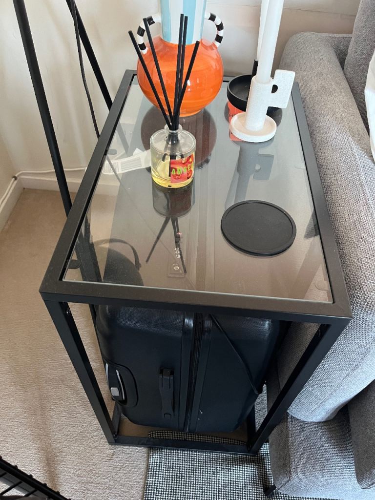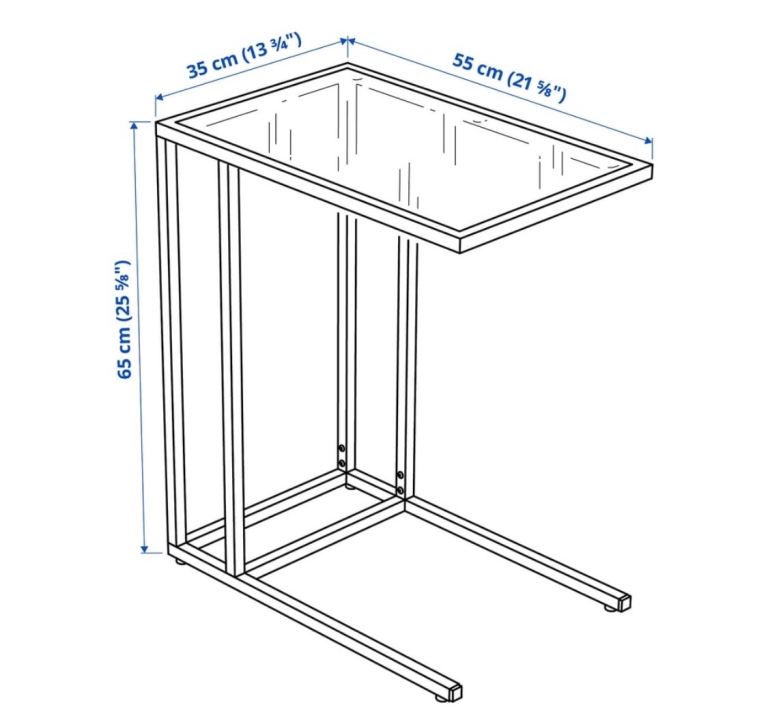 Vittsjo Ikea laptop table, black, metallic w glass top surface. In excellent condition. Dimensions as seen in the pics