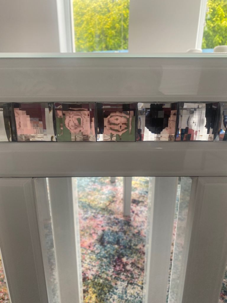 Beautiful white gloss lamp / side table with lovely detail purchased from designer rooms