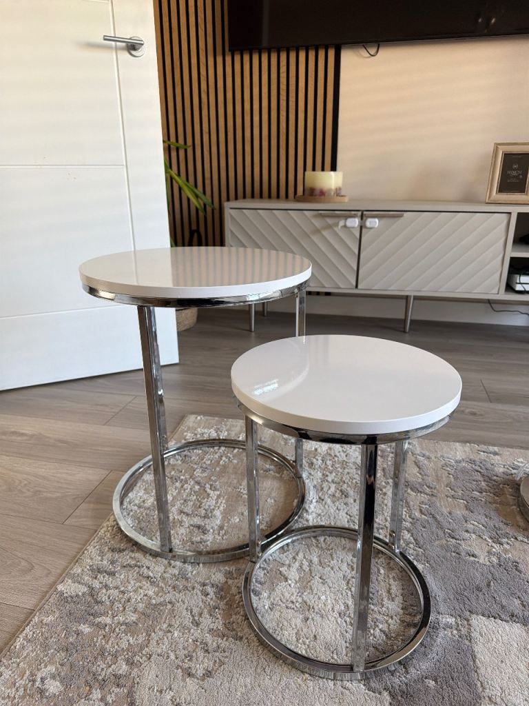 Large table: W 55cm, D 40cm, H 50cmSmaller table: W 44cm, D 38cm, H 44cm