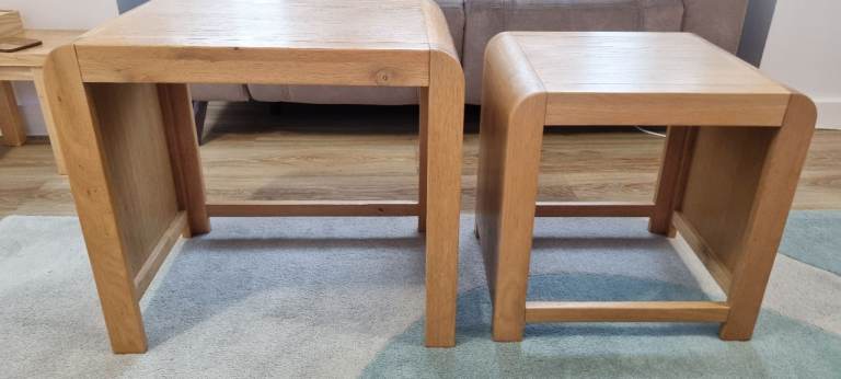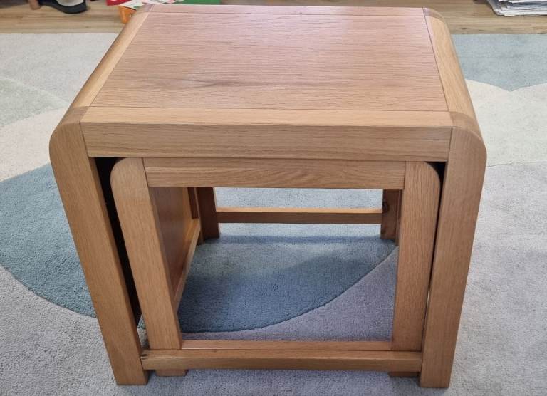 Selling my oak nest of tables due to downsizing. They are in very good used condition, with no scratches or dents. The smaller table looks like new, as it has barely been used.