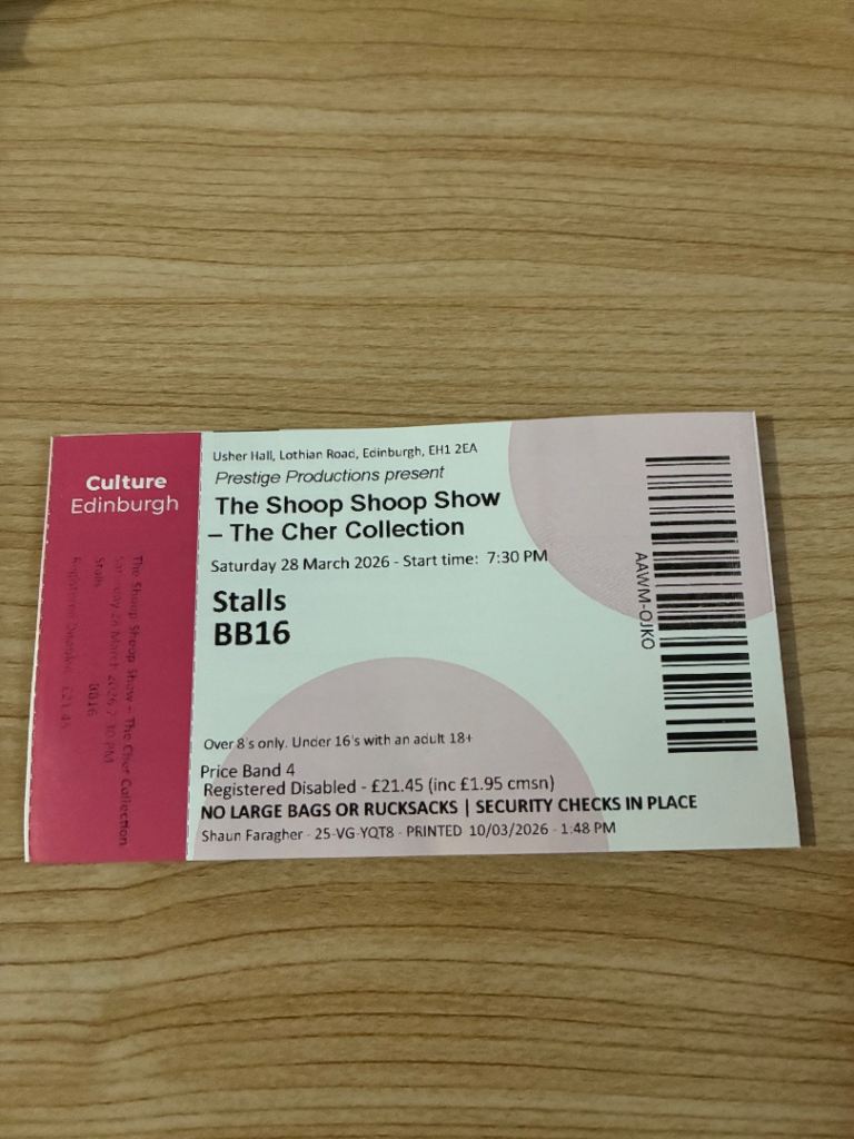 2 tickets for The Shoop Shoop Show - The Cher Collection at the Usher Hall in Edinburgh Saturday 28th March 2026