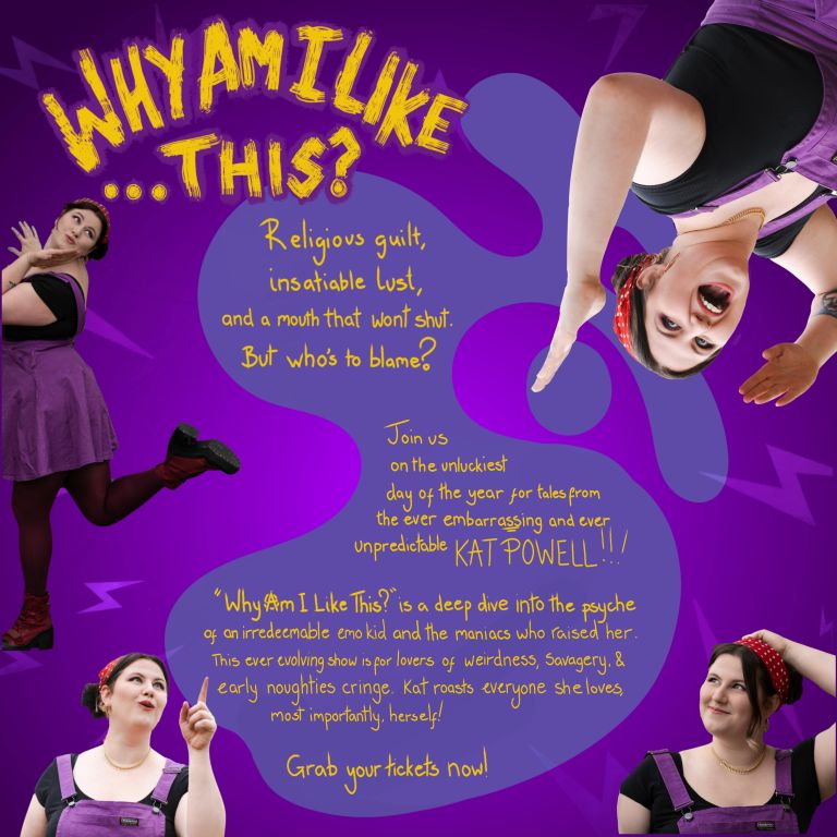 Join us on the unluckiest day of the year for tales from the ever embarrassing and unpredictable, Kat Powell! This ever evolving show is for lovers of weirdness, savagery, and noughties cringe. Kat roasts everyone she loves – most importantly, herself.
