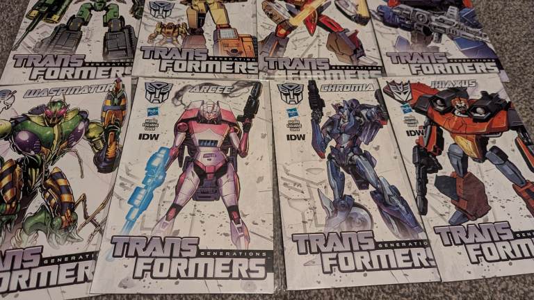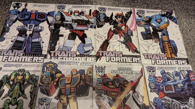 These have been read but stored and remain in a really good condition. This is a bundle of 12 comics which contain stories from the More than Meets the Eye, Robots in Disguise stories in the Dark Cybertron chapter. Comics come in a plastic bag. For a breakdown the comics included are listed below: