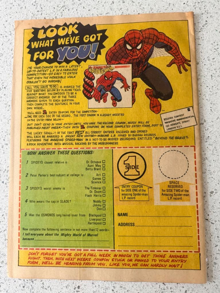The Mighty World Of Marvel No26 week ending March 31st 1973.