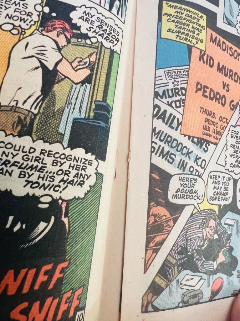 Dwelling on the dilemma that the criminal known as Starr Saxon knows that Matt Murdock is really Daredevil, DD reflects on the events that led him to become Daredevil. What follows is an extended recounting of the events first presented in Daredevil #1.