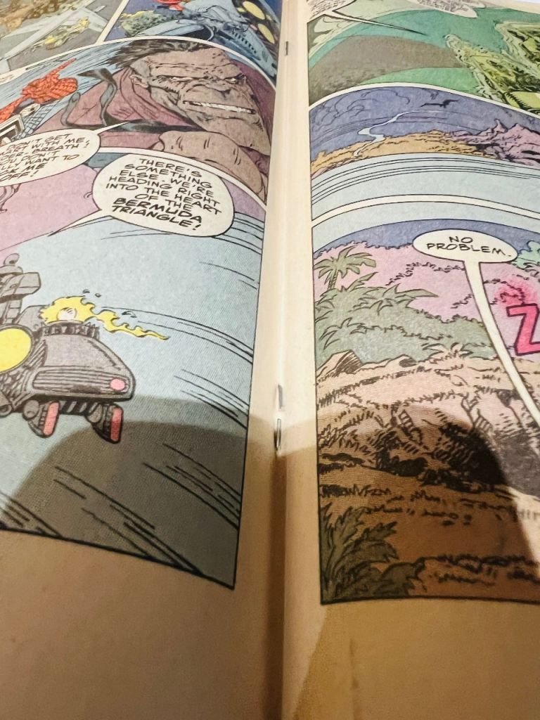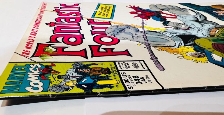 9.0 Grade - Very slight wear beginning to show around the staples and stress points owing to the comic being opened and read (carefully) two or three times and stored away with some care. For American comics, most of the cover lustre still remains and for British comics the cover should be flat, uniform creamy or off-white with only a few very minor stress creases at the spine. For American comics, only the tiniest spine wear at the top or bottom but no cover marks, no tears, no prominent creases (perhaps 2mm and quite hard to spot). The pages can be creamy or off-white but in no way yellowing and with no darker page edges. For Very Fine, think simply Very Sharp.