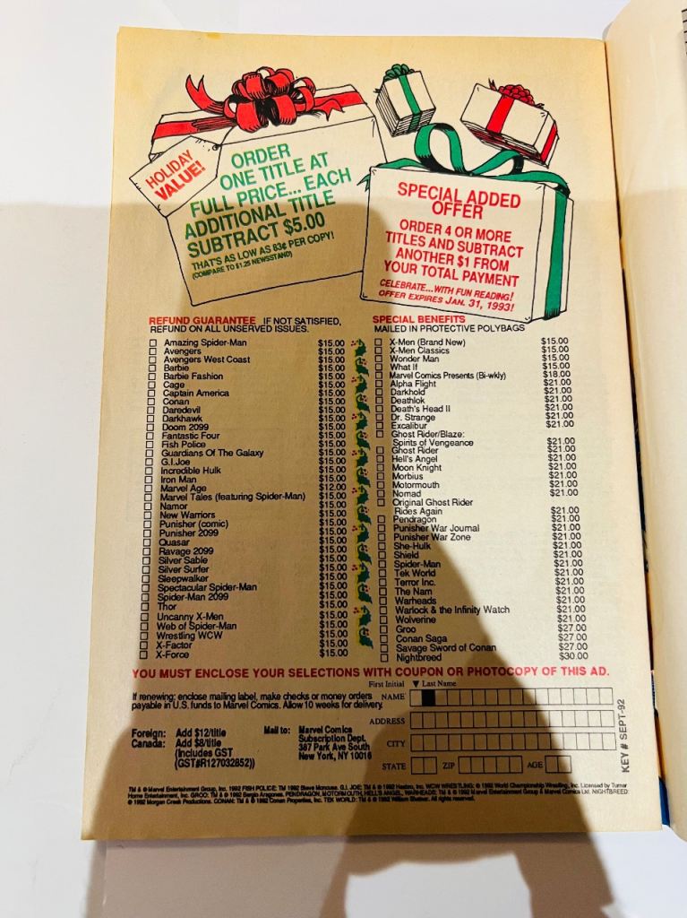 8.5 Grade - Very slight wear beginning to show around the staples and stress points owing to the comic being opened and read (carefully) two or three times and stored away with some care. For American comics, most of the cover lustre still remains and for British comics the cover should be flat, uniform creamy or off-white with only a few very minor stress creases at the spine. For American comics, only the tiniest spine wear at the top or bottom but no cover marks, no tears, no prominent creases (perhaps 2mm and quite hard to spot). The pages can be creamy or off-white but in no way yellowing and with no darker page edges. For Very Fine, think simply Very Sharp.