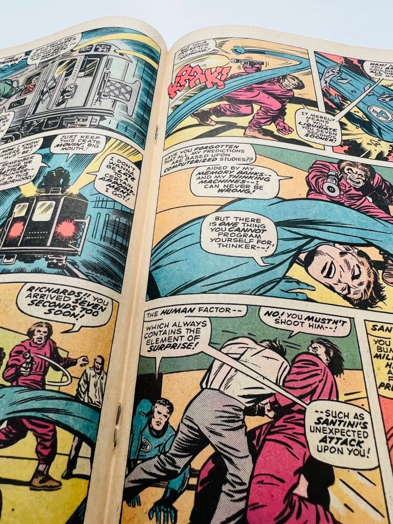 Reed Richards, Johnny Storm, and the New York police manage to track down the Mad Thinker's hideout in the hopes of finding a way of restoring the Thing's personality to normal. Upon their arrival, they are attacked by the Thinker's army of androids.