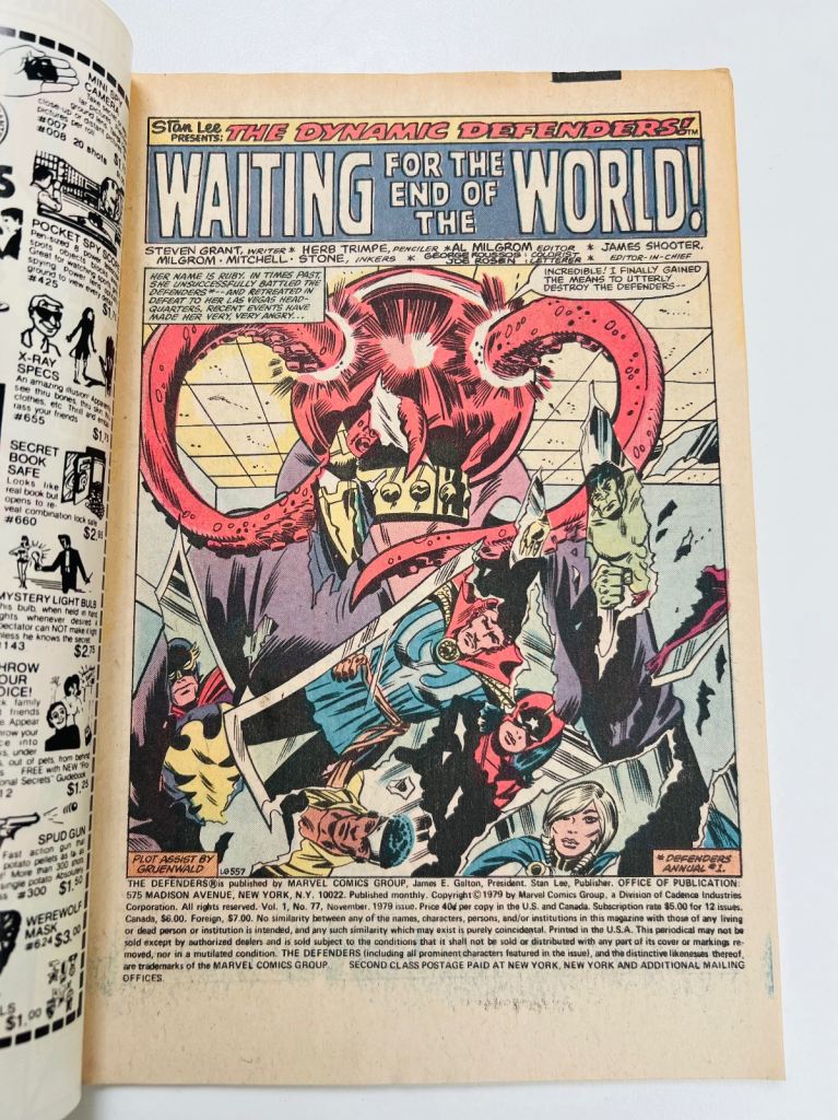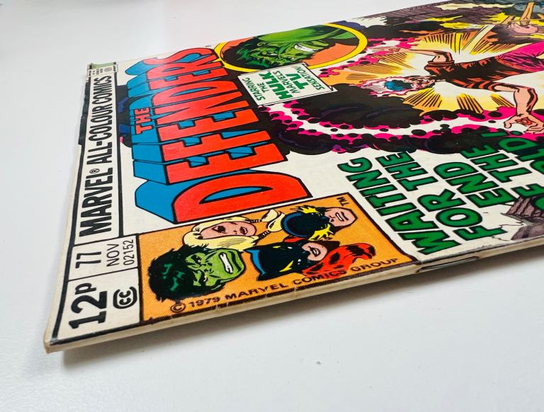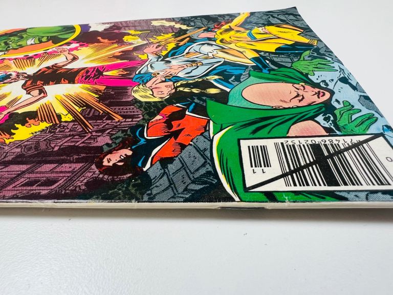 8.0 Grade - Very slight wear beginning to show around the staples and stress points owing to the comic being opened and read (carefully) two or three times and stored away with some care. For American comics, most of the cover lustre still remains and for British comics the cover should be flat, uniform creamy or off-white with only a few very minor stress creases at the spine. For American comics, only the tiniest spine wear at the top or bottom but no cover marks, no tears, no prominent creases (perhaps 2mm and quite hard to spot). The pages can be creamy or off-white but in no way yellowing and with no darker page edges. For Very Fine, think simply Very Sharp.