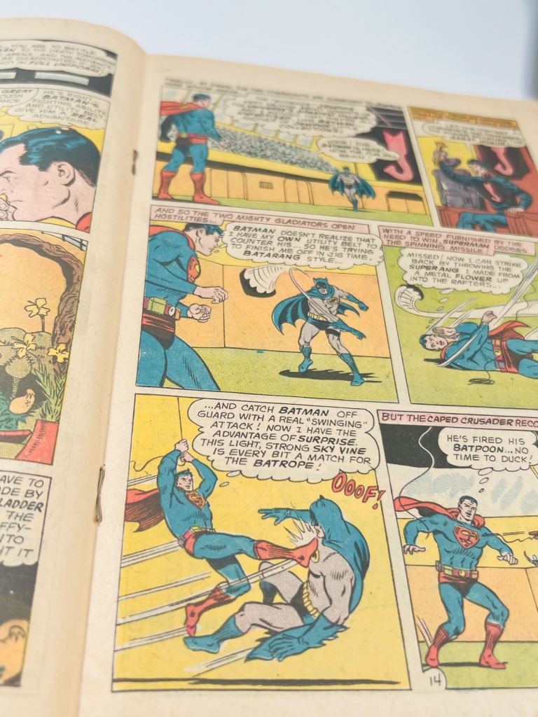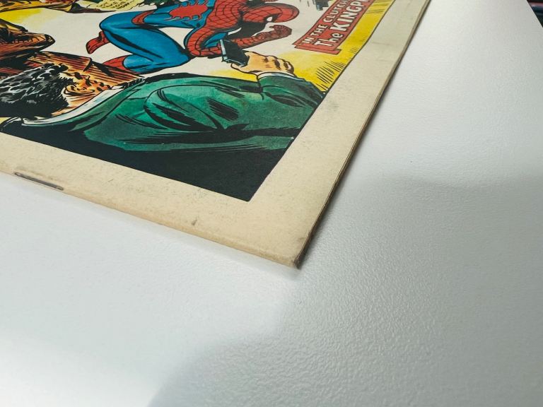 8.5 Grade - Very slight wear beginning to show around the staples and stress points owing to the comic being opened and read (carefully) two or three times and stored away with some care. For American comics, most of the cover lustre still remains and for British comics the cover should be flat, uniform creamy or off-white with only a few very minor stress creases at the spine. For American comics, only the tiniest spine wear at the top or bottom but no cover marks, no tears, no prominent creases (perhaps 2mm and quite hard to spot). The pages can be creamy or off-white but in no way yellowing and with no darker page edges. For Very Fine, think simply Very Sharp.
