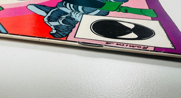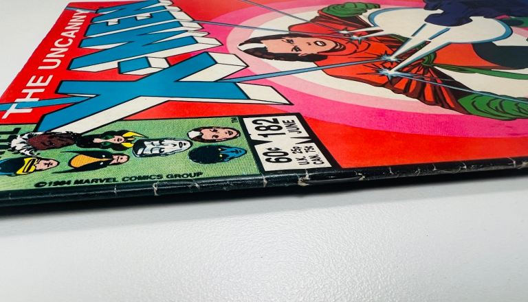 8.0 Grade - Very slight wear beginning to show around the staples and stress points owing to the comic being opened and read (carefully) two or three times and stored away with some care. For American comics, most of the cover lustre still remains and for British comics the cover should be flat, uniform creamy or off-white with only a few very minor stress creases at the spine. For American comics, only the tiniest spine wear at the top or bottom but no cover marks, no tears, no prominent creases (perhaps 2mm and quite hard to spot). The pages can be creamy or off-white but in no way yellowing and with no darker page edges. For Very Fine, think simply Very Sharp.