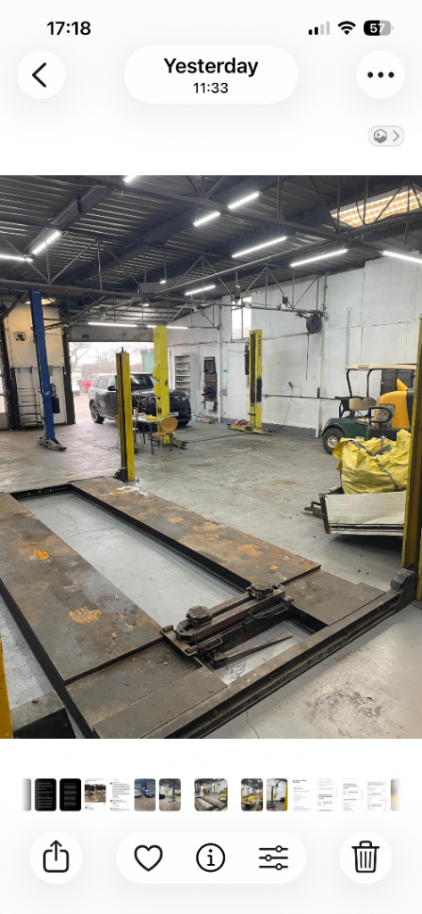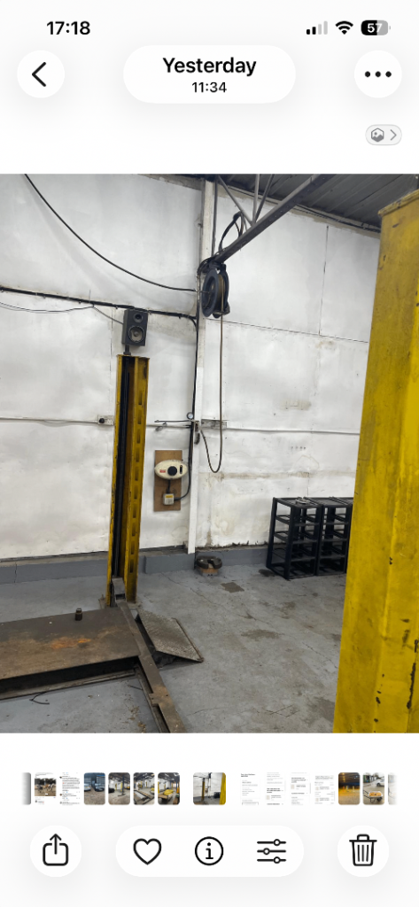 Garage/workshop to rent. 3 ramps, 3 air lines. 1 compressor, 1 welder, 1 electric roller shutter door, 1 manual chain pull, 1 electric car charger. Additional parking by arrangement. Inclusive of water and electricity