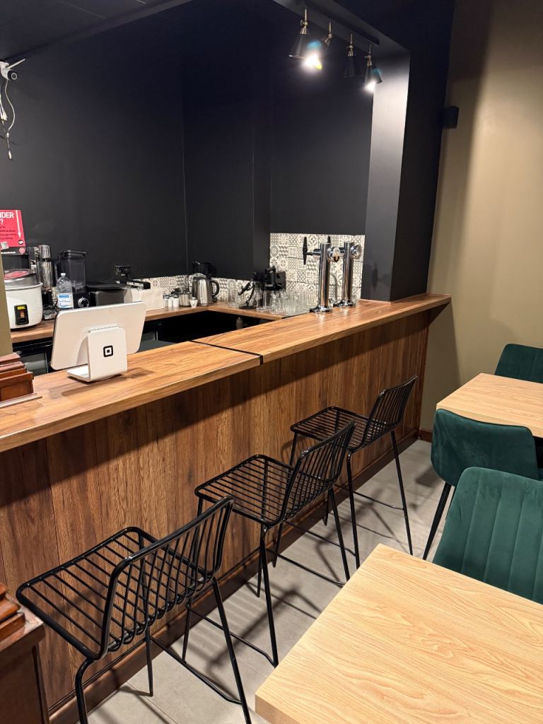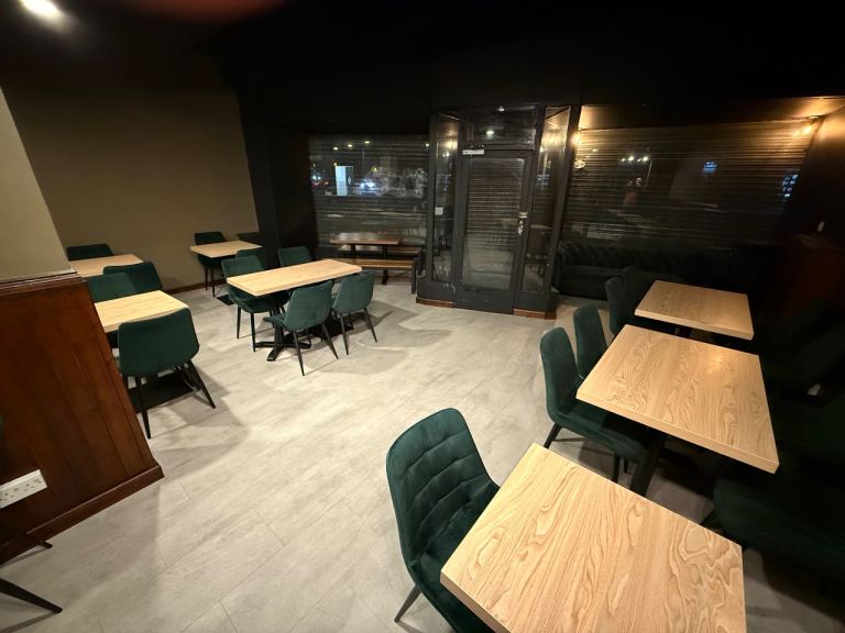 Premises Overview: The restaurant features a welcoming dining hall with a capacity for over 40 guests. It is fully furnished with a variety of seating options, including standard tables, high-top bar seating, sofas, and armchairs. The space is equipped with air conditioning for customer comfort.