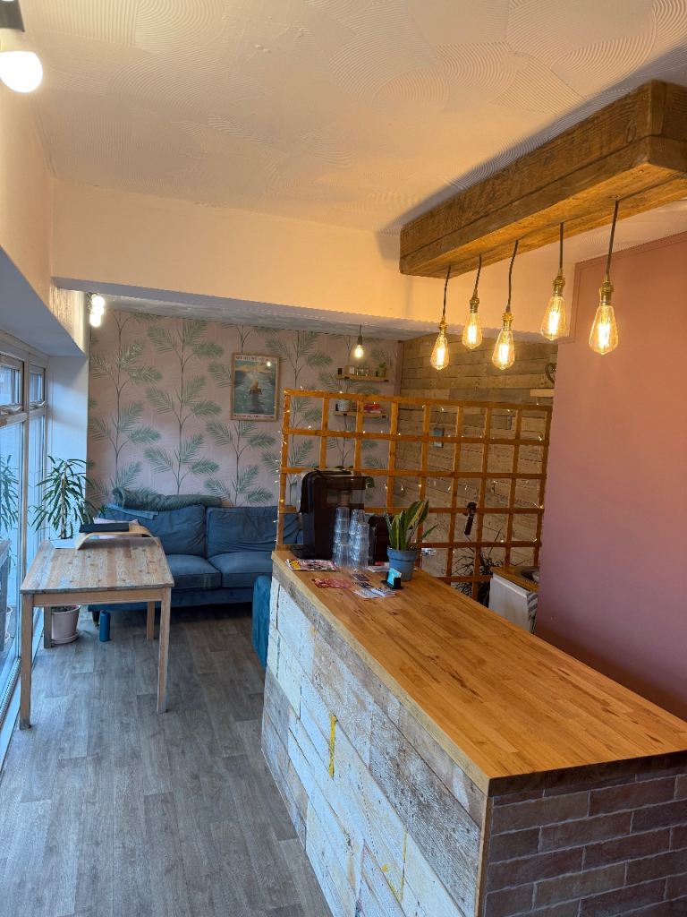 One room has a stud wall and has been split into two spaces - the front has plumbing/electrics to include a sink, dishwasher and a fridge