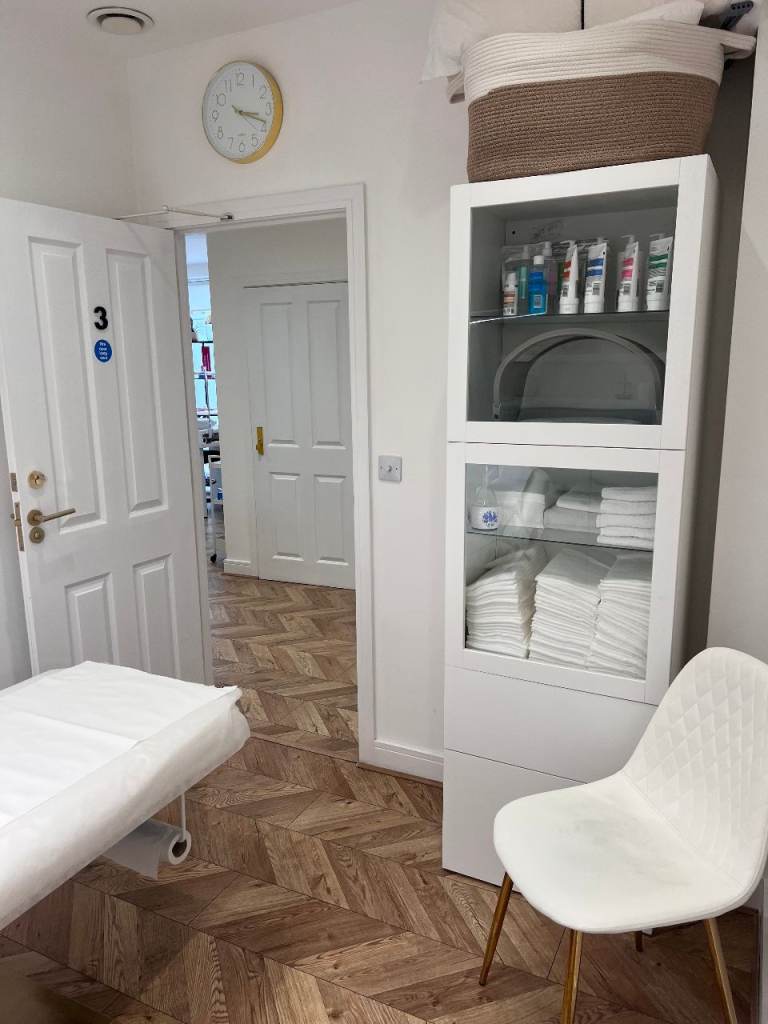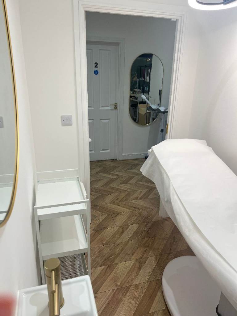 • Fully furnished rooms: electric treatment beds, sinks, therapist stool, client chair, trolley, ring lamp, sharps containers, storage