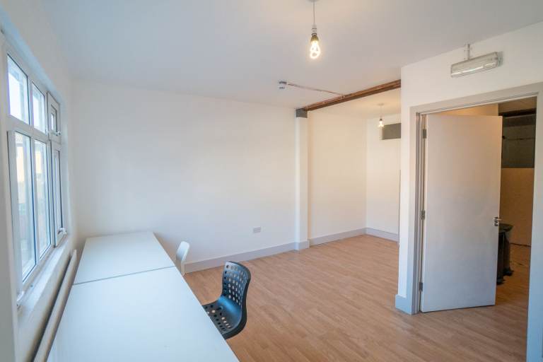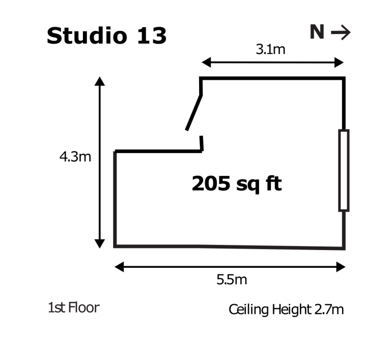 This medium studio, office space has a big window, with plenty of room for a small team or work and storage space. It is on the first floor. Please see the floor plan in the photos for the size.